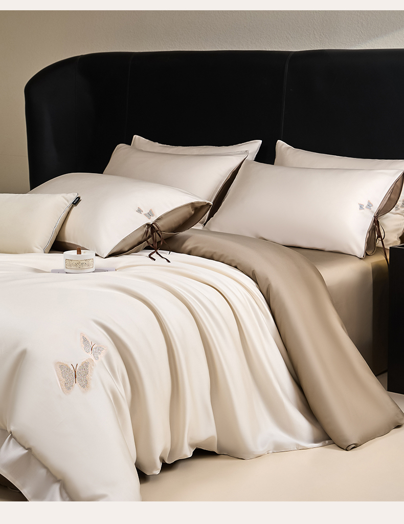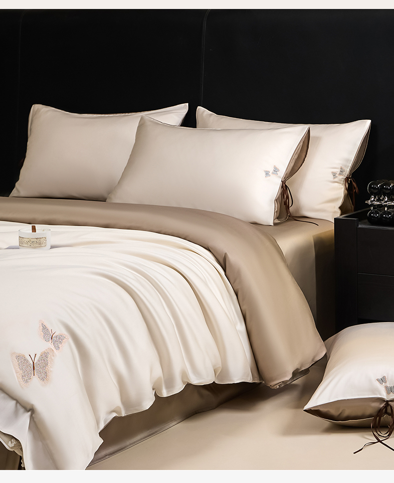 当前位置: 91家纺网 > 商品网购 > 床品套件 > 四件套 > 莱赛尔四件套 > DC 2026新款天丝单边蝴蝶织带四件套--蝶音系列 蝶音-元气白桃+麦肤色