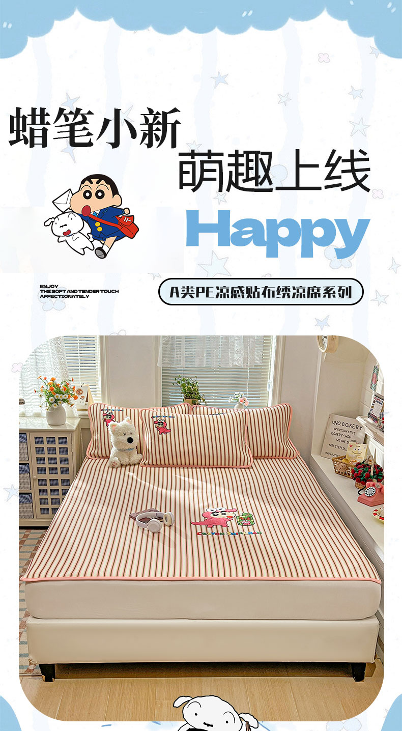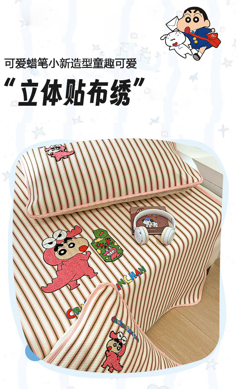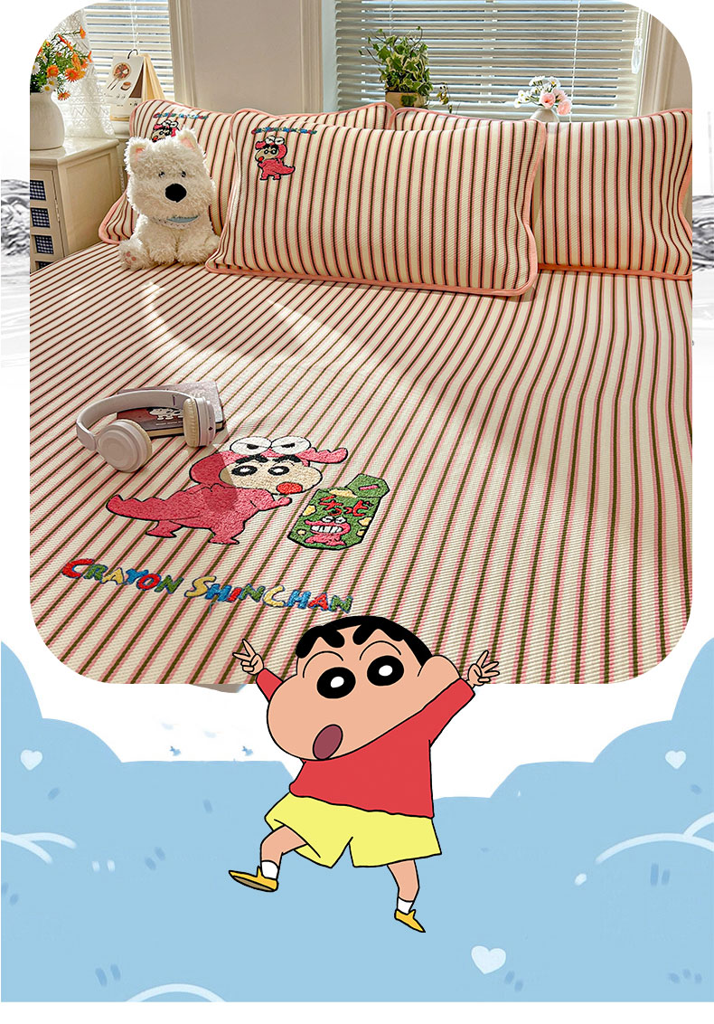 当前位置: 91家纺网 > 商品网购 > 床上用品 > 凉席 > 凉席套件 > 桃子家居 2026新款A类PE凉感卡通蜡笔小新毛巾绣高端工艺空调软席凉席三件套系列 PE蜡笔小新-恐龙小新