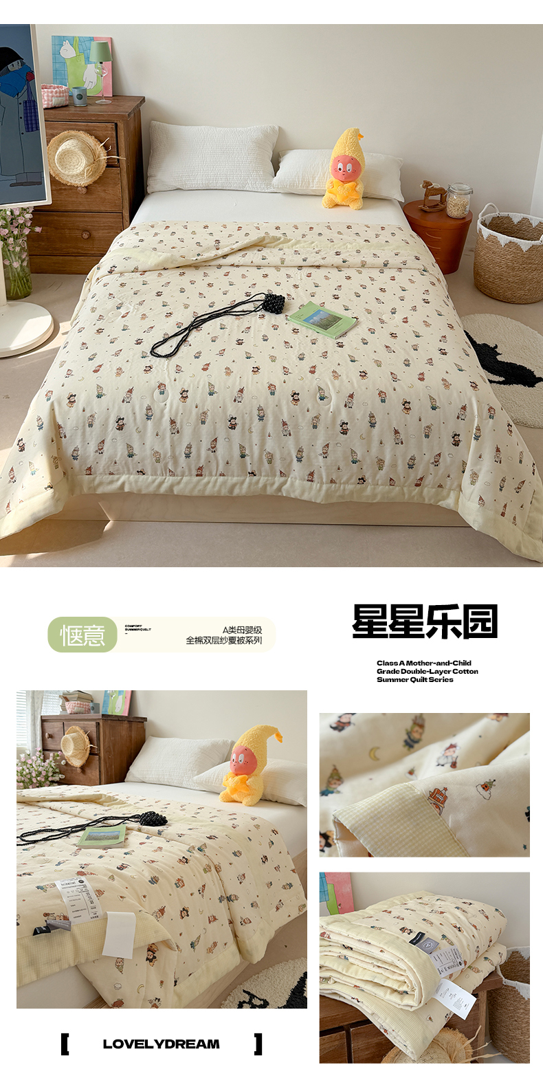 (总)暖生活 2026新款A类母婴级全棉双层纱夏被,波点凯蒂,彩豆乐园,粉黛蝴蝶结,奶黄甜猫,青柠萌宠,星星乐园,云朵城堡,组合