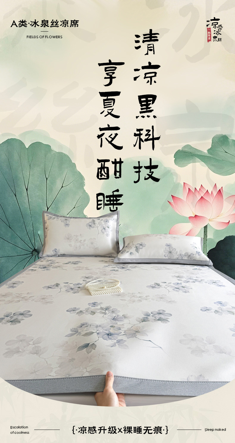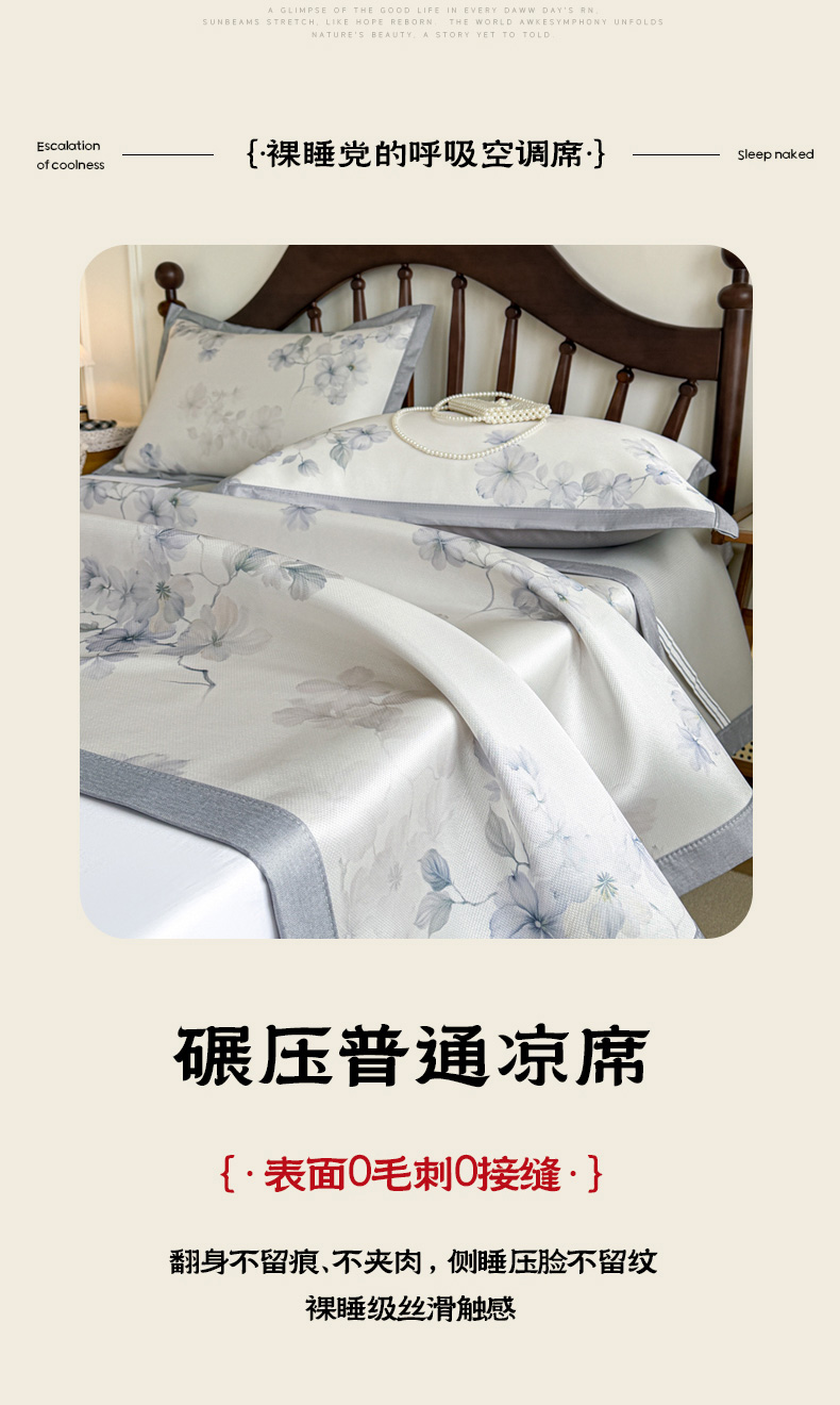 商品名称:倾慕家纺 2026新款A类数码印花冰泉丝凉席 素情