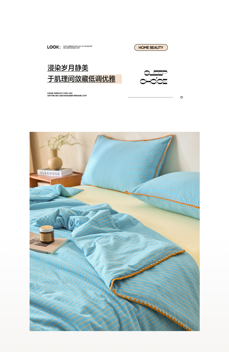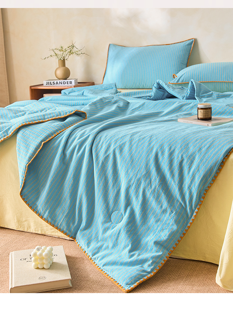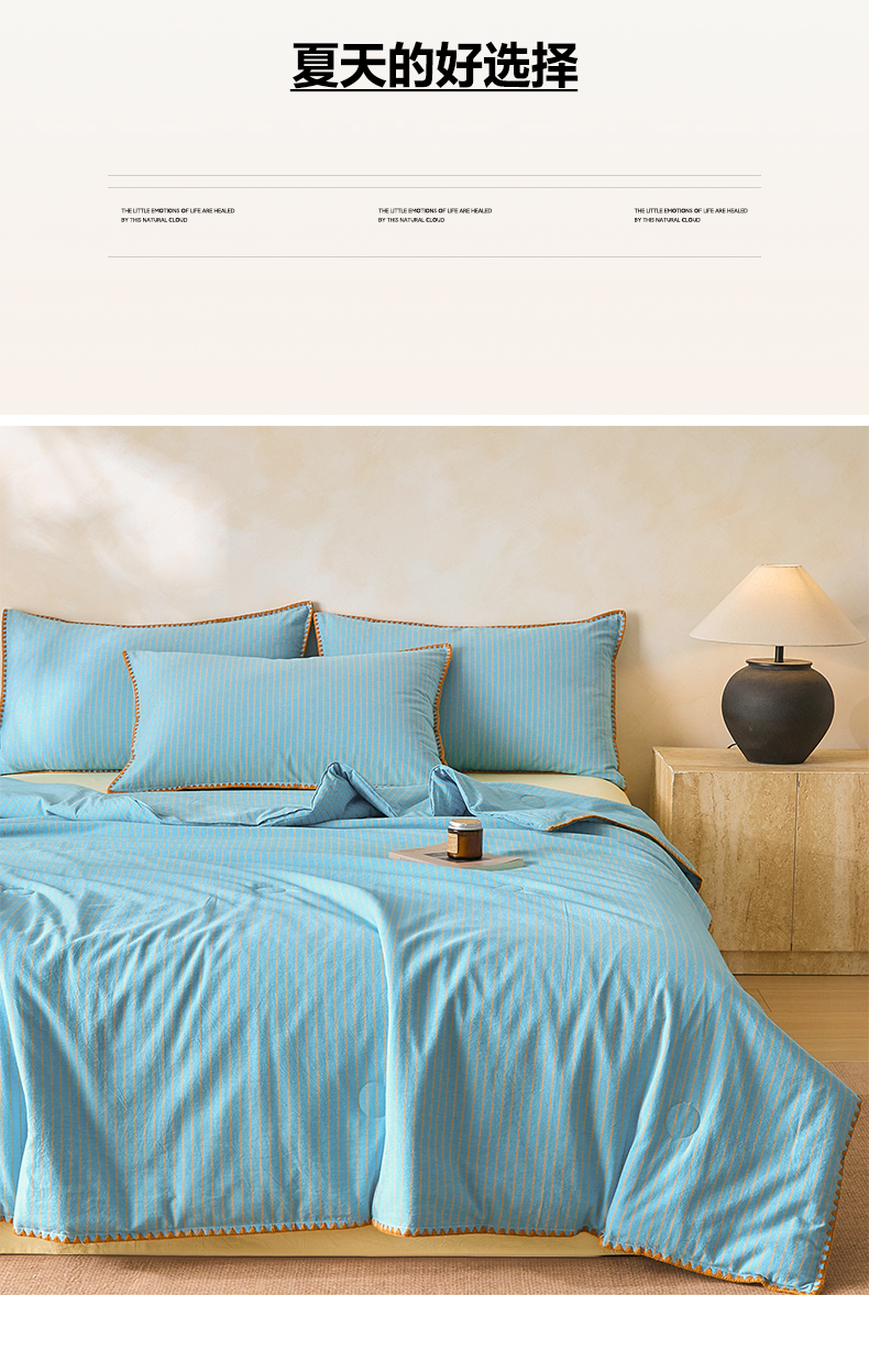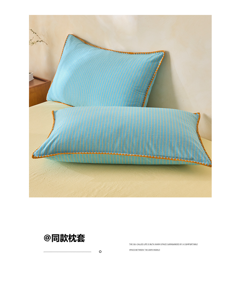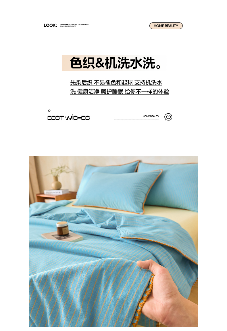 当前位置: 91家纺网 > 商品网购 > 床品套件 > 四件套 > 夏被四件套 > 如一 2026新款全棉色织水洗棉条纹三角针夏被四件套 晴空橙