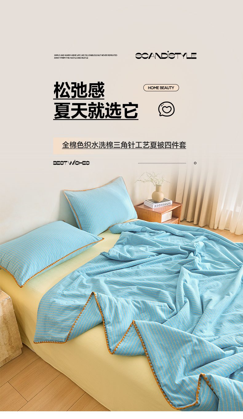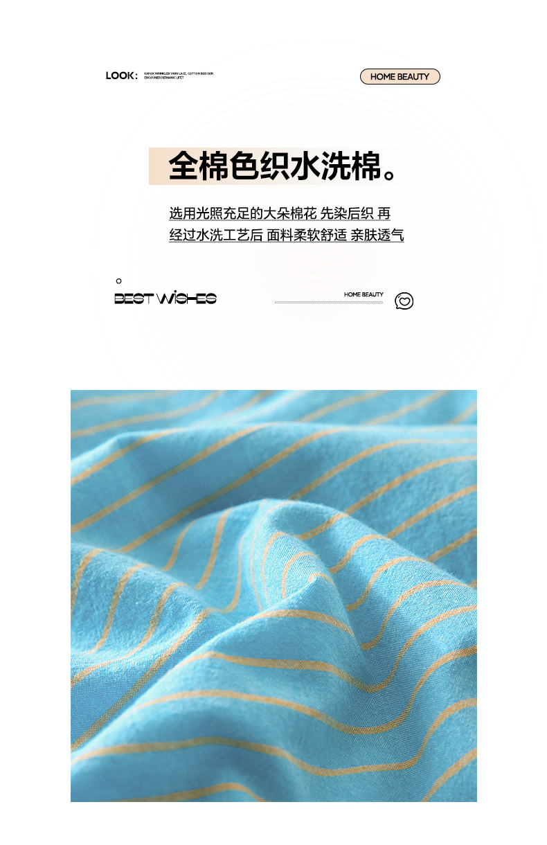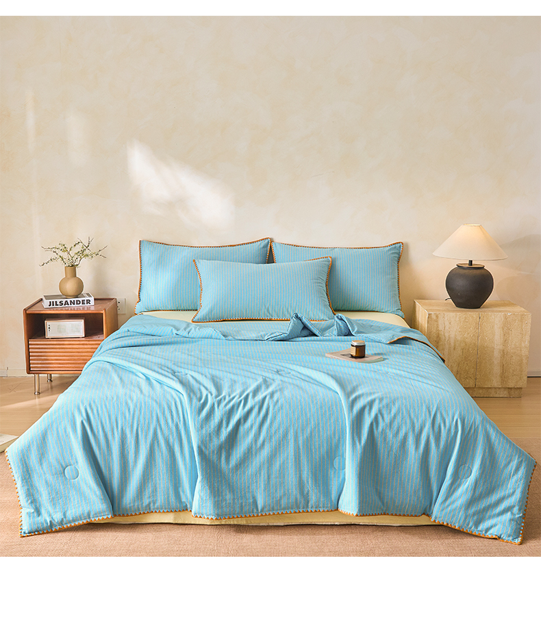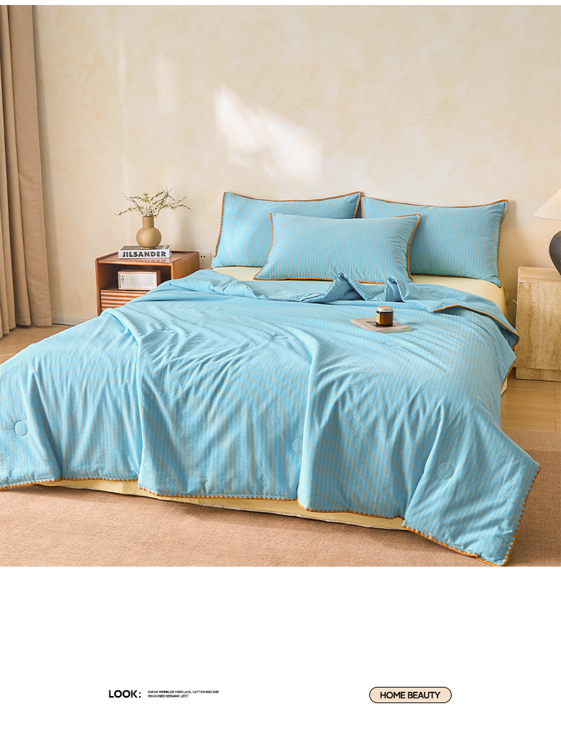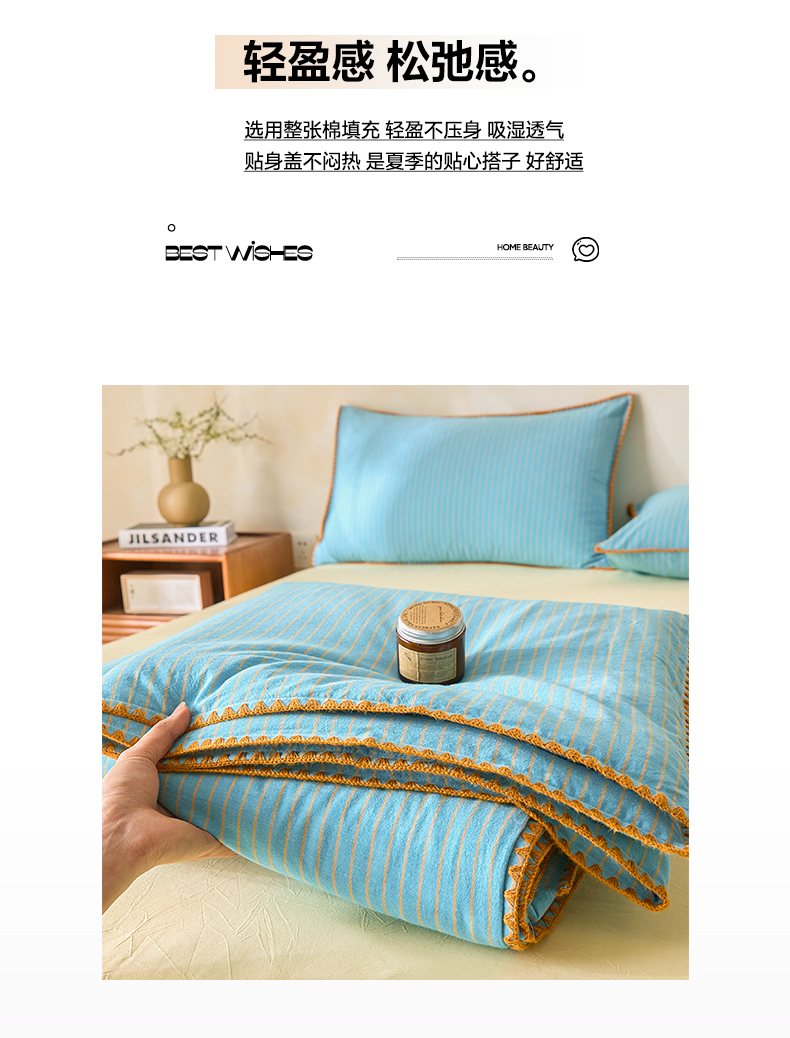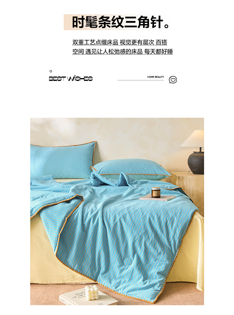 当前位置: 91家纺网 > 商品网购 > 床品套件 > 四件套 > 夏被四件套 > 如一 2026新款全棉色织水洗棉条纹三角针夏被四件套 晴空橙