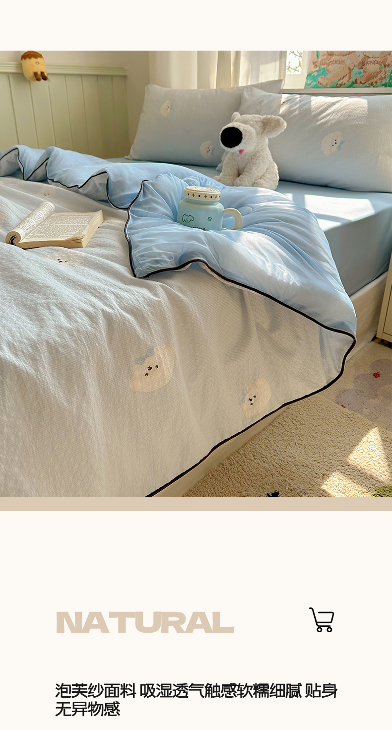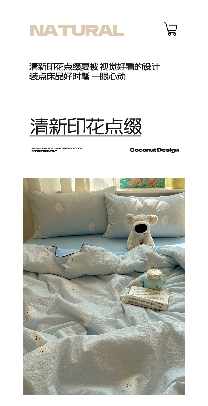 商品名称:几禾 2026新款泡芙纱单夏被夏凉被空调被-凉糖系列(凉而不冰的触感,清凉与柔软兼得) 凉糖-蓝领结狗