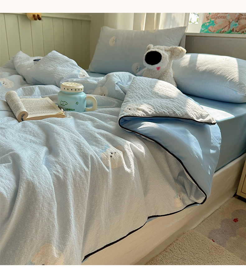 被子 > 夏被 > 几禾 2026新款泡芙纱单夏被夏凉被空调被-凉糖系列(凉而不冰的触感,清凉与柔软兼得) 凉糖-蓝领结狗