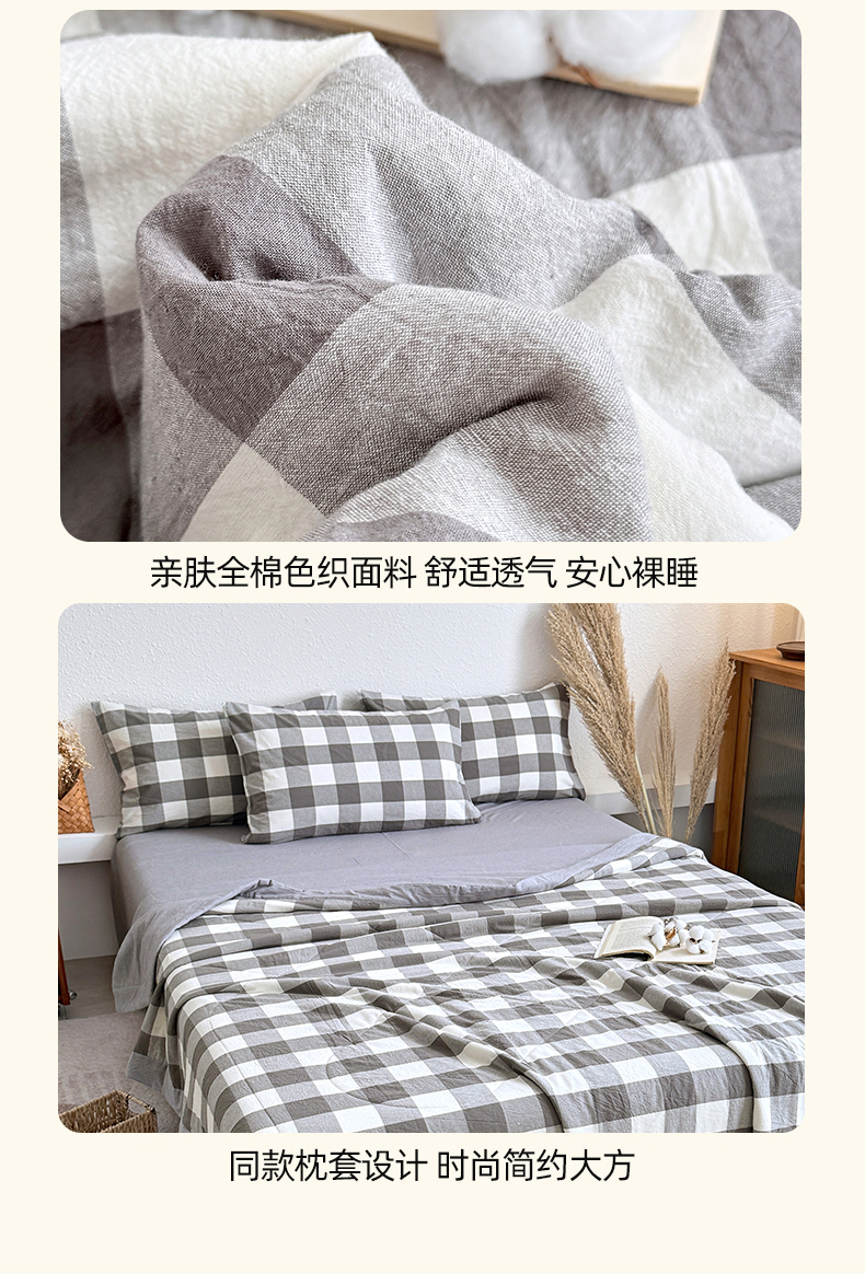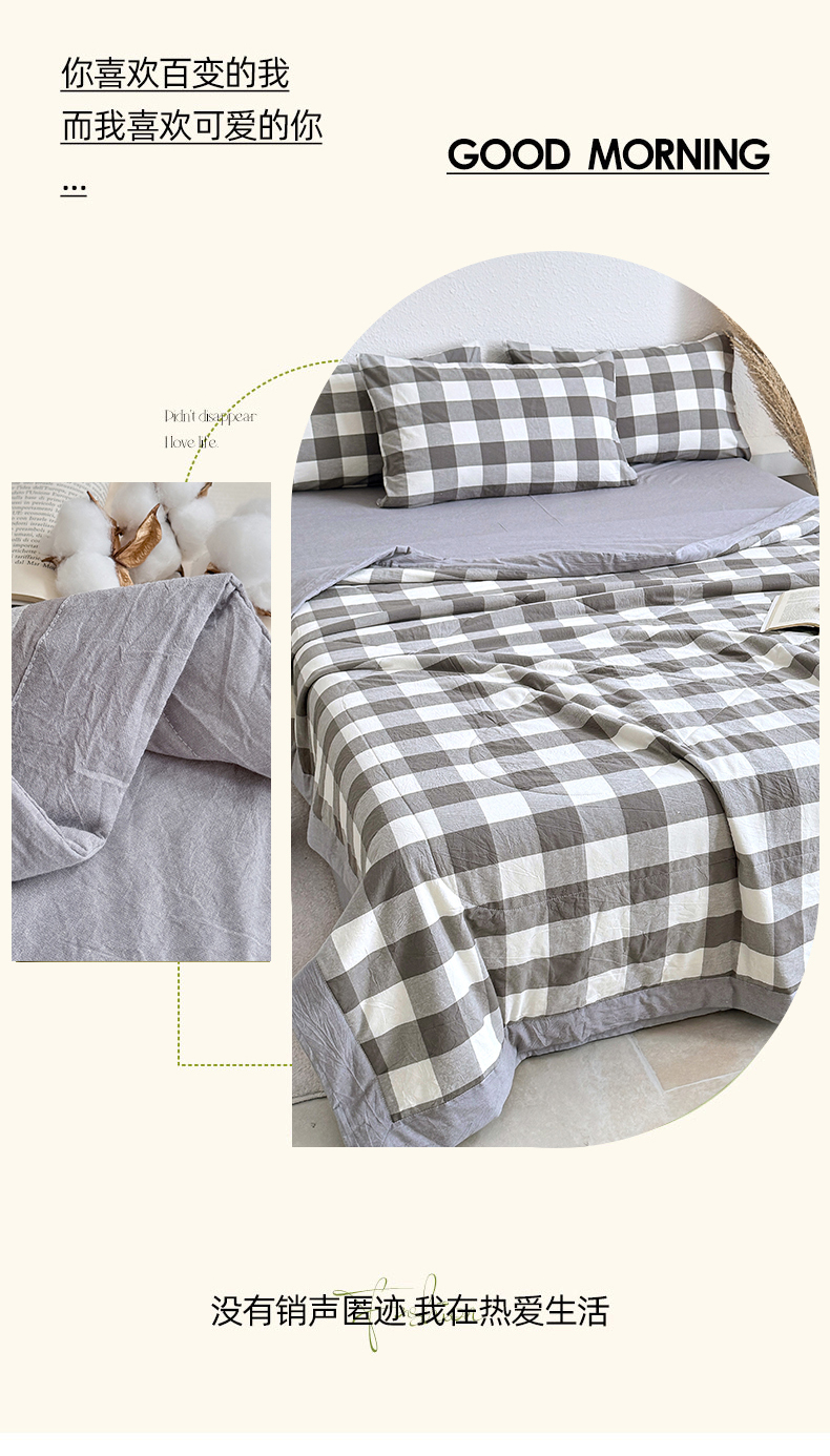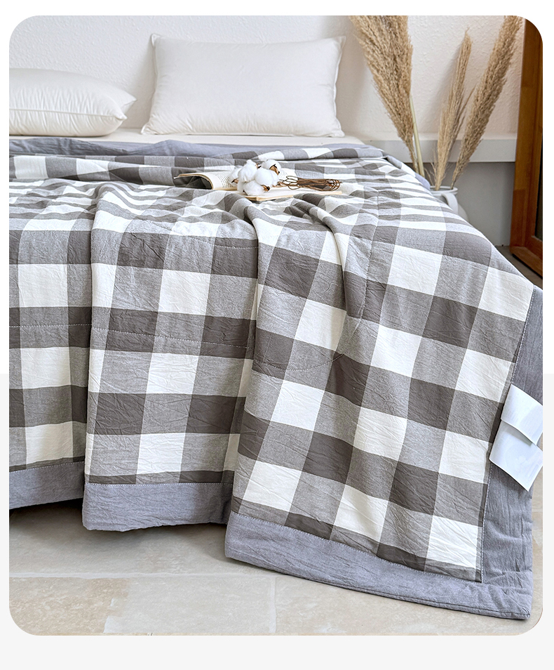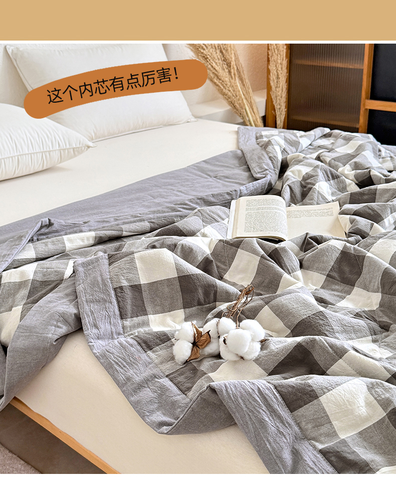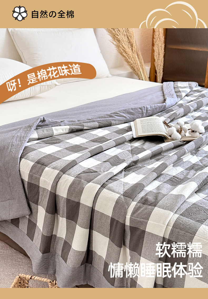 • 91家纺网 家纺一手货源 找家纺 家贝爱 2026新款全棉色织新疆棉花夏被夏凉被空调被 中灰格
