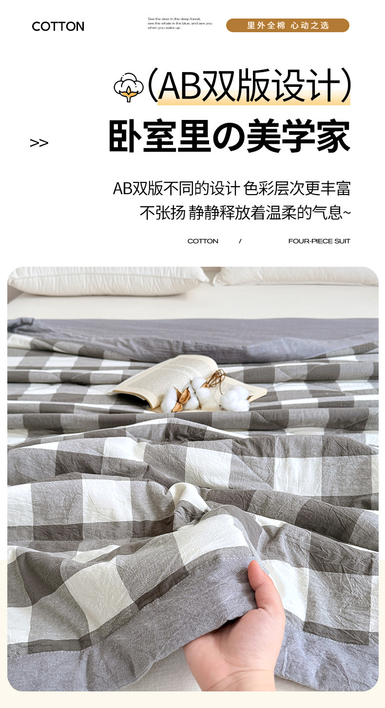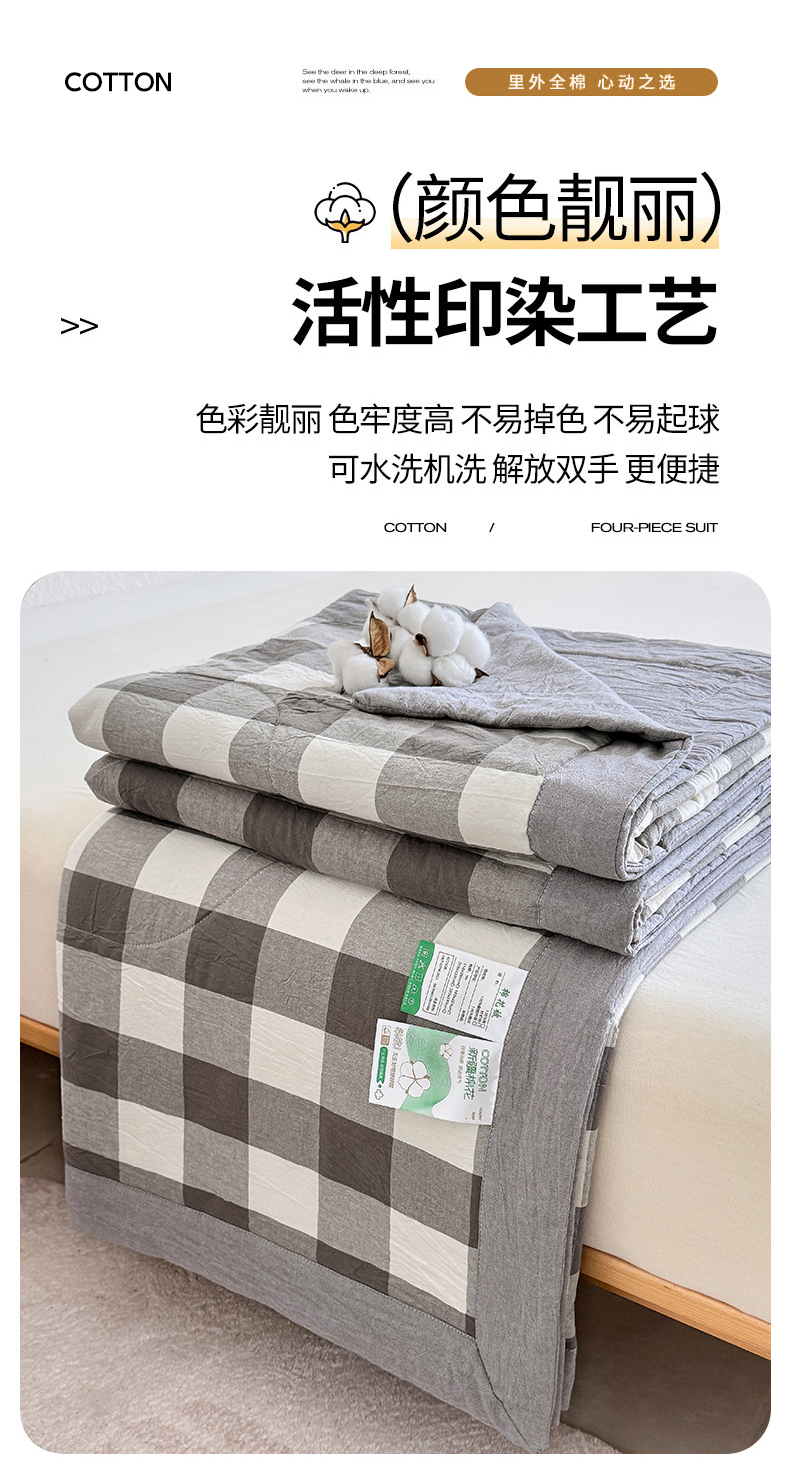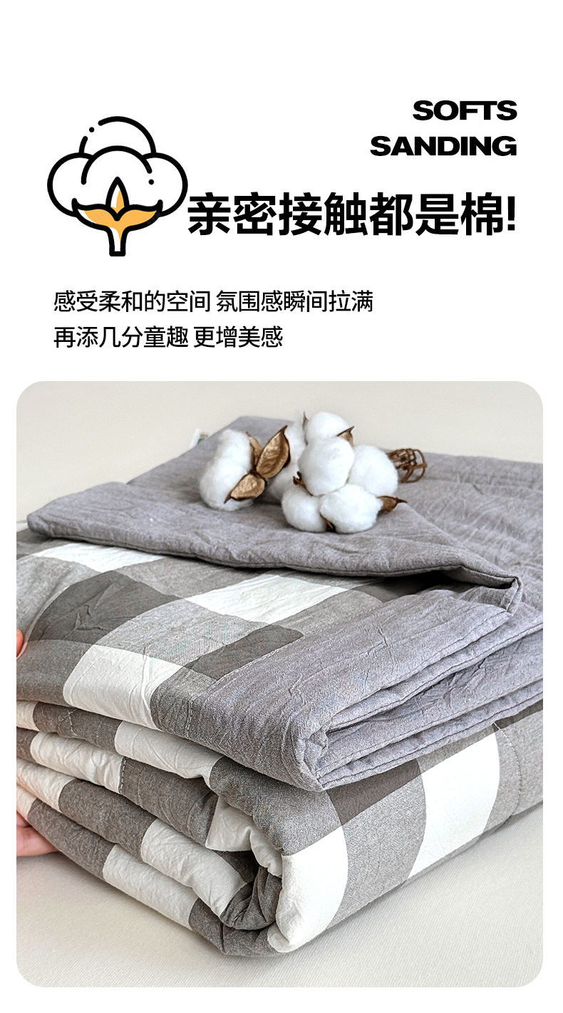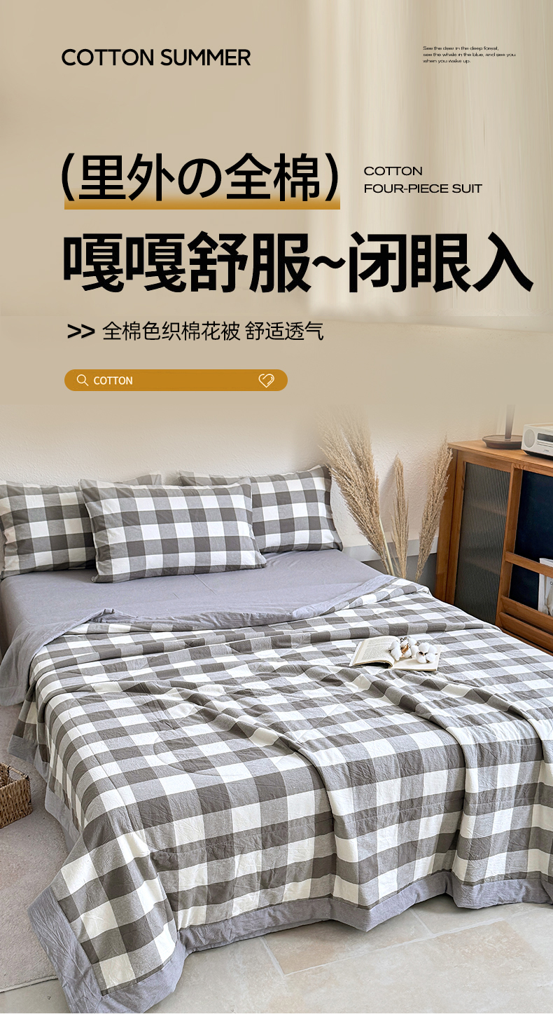 • 91家纺网 家纺一手货源 找家纺 家贝爱 2026新款全棉色织新疆棉花夏被夏凉被空调被 中灰格