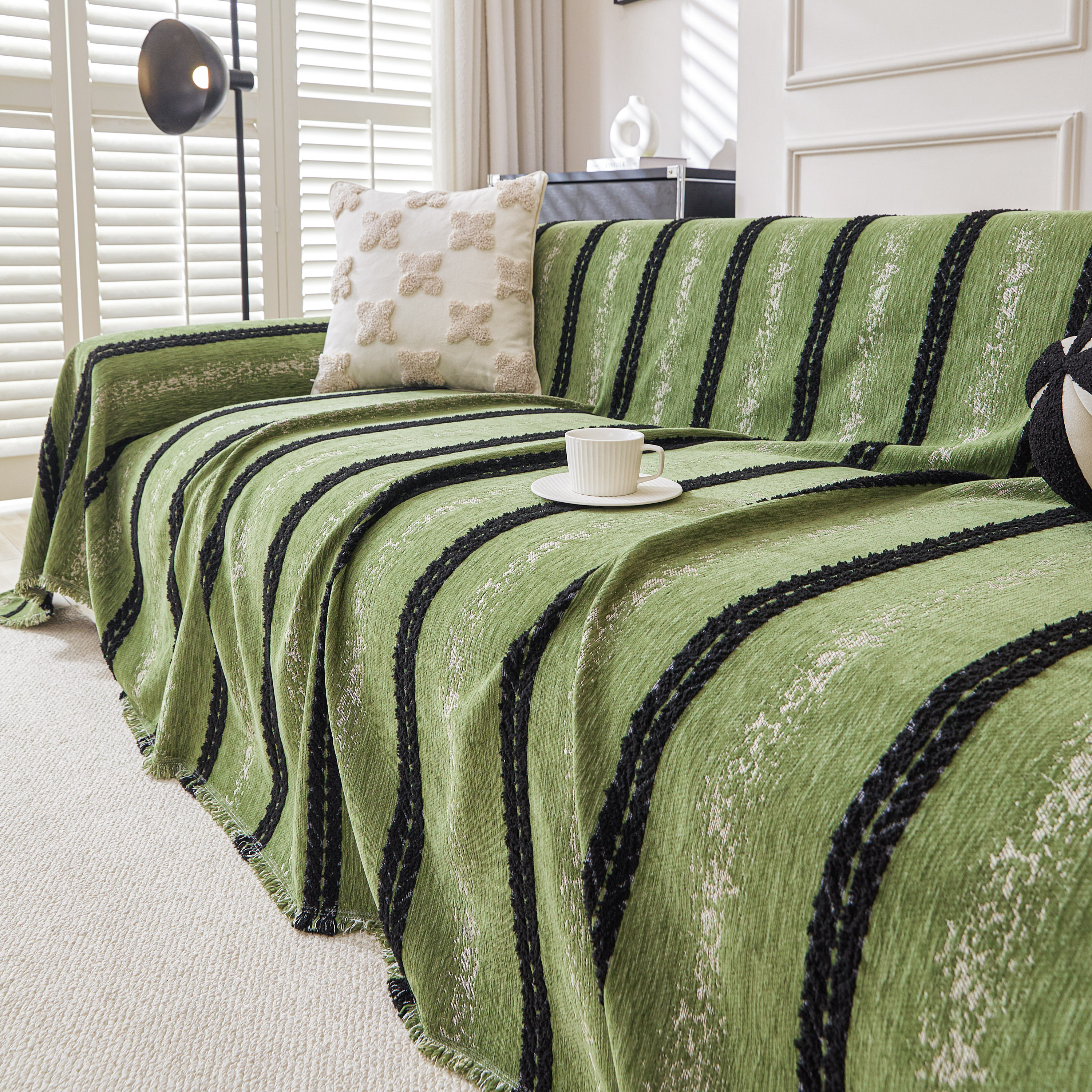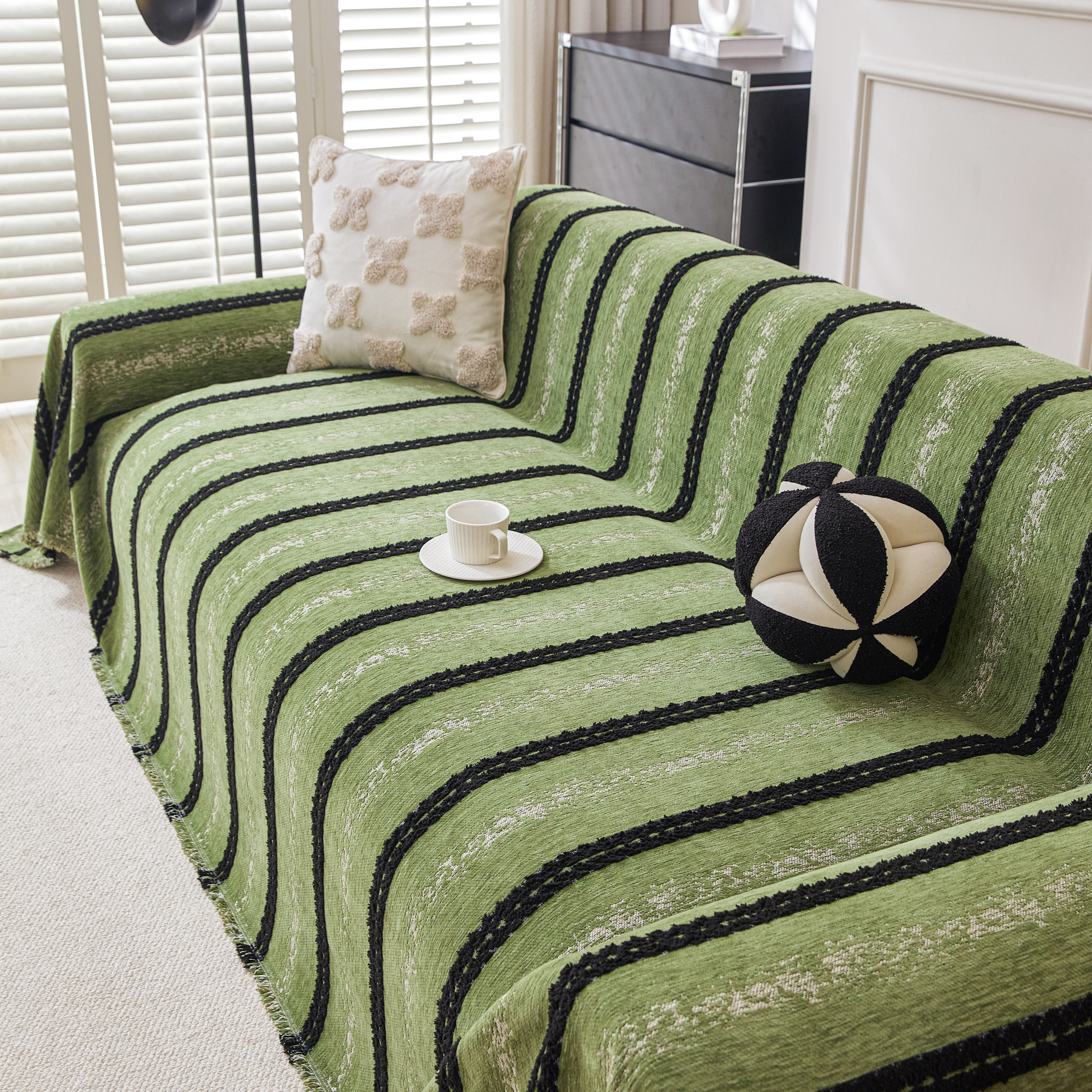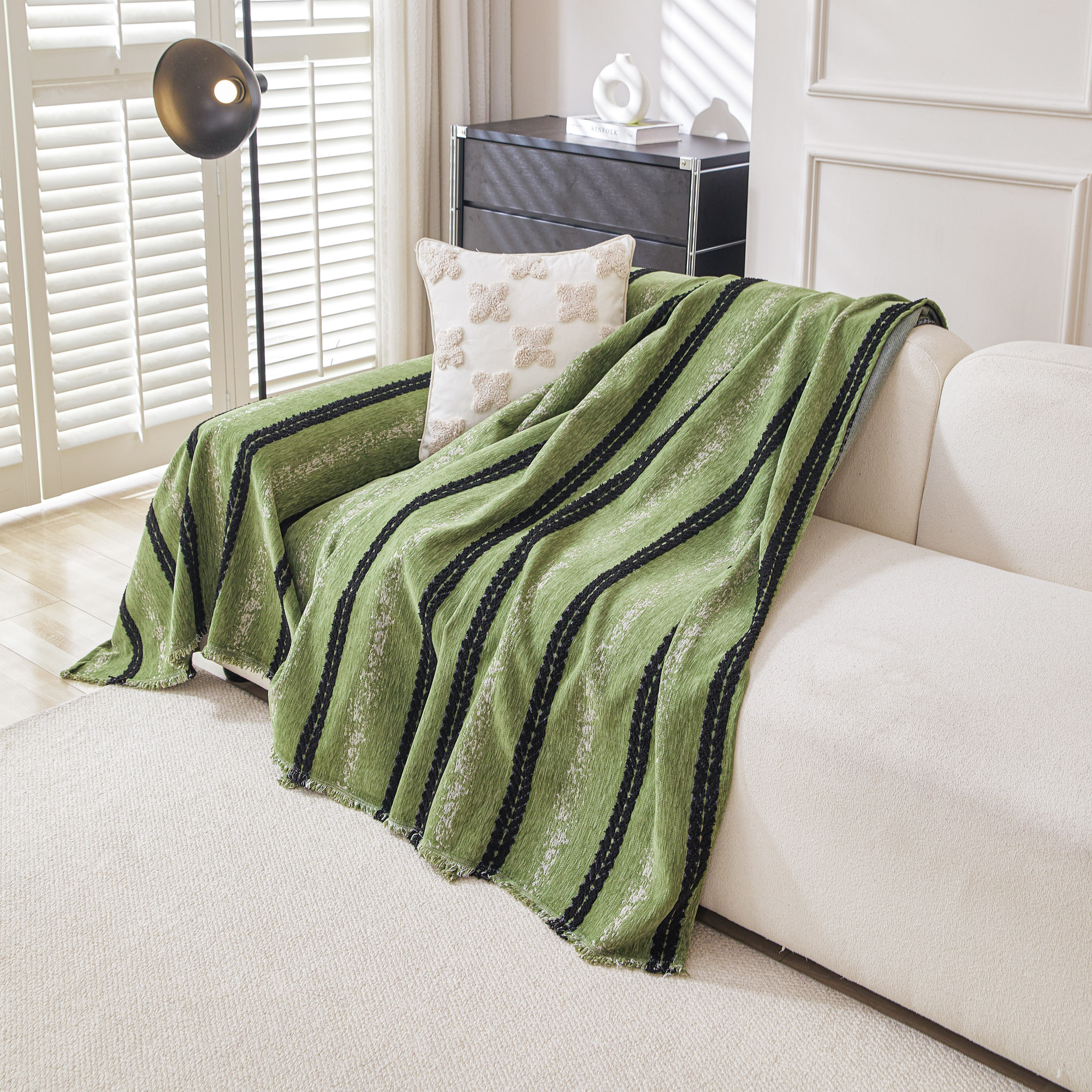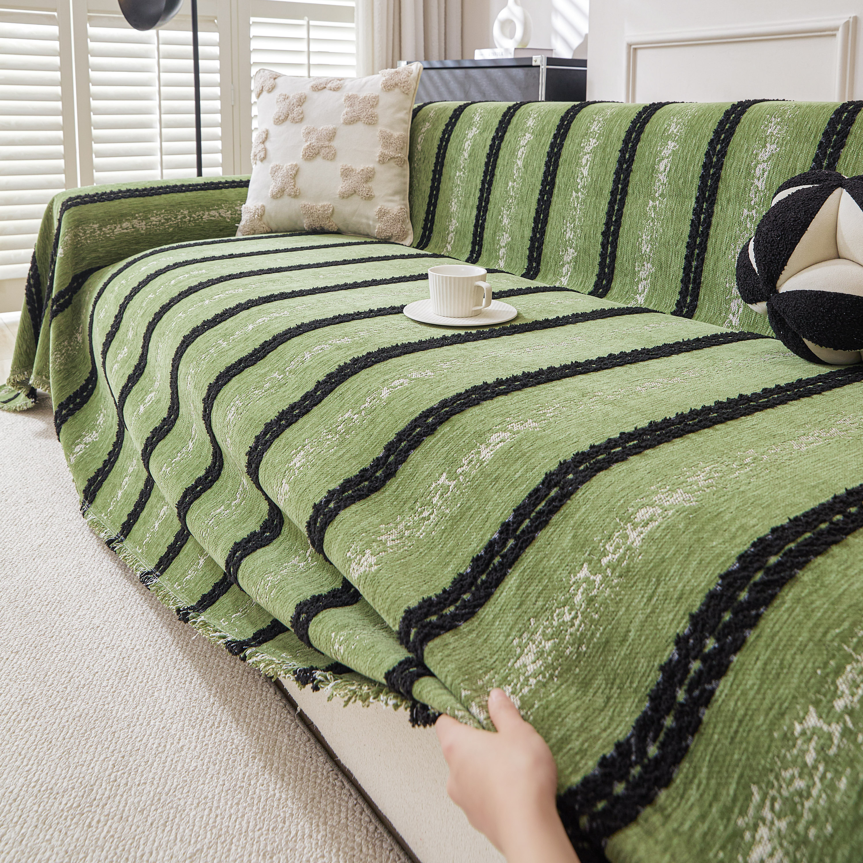 当前位置: 91家纺网 > 商品网购 > 居家布艺 > 坐垫/椅垫/沙发垫 > 沙发垫 > 逐日沙发套 2026新款加厚雪尼尔-沙发巾 织序流年-绿