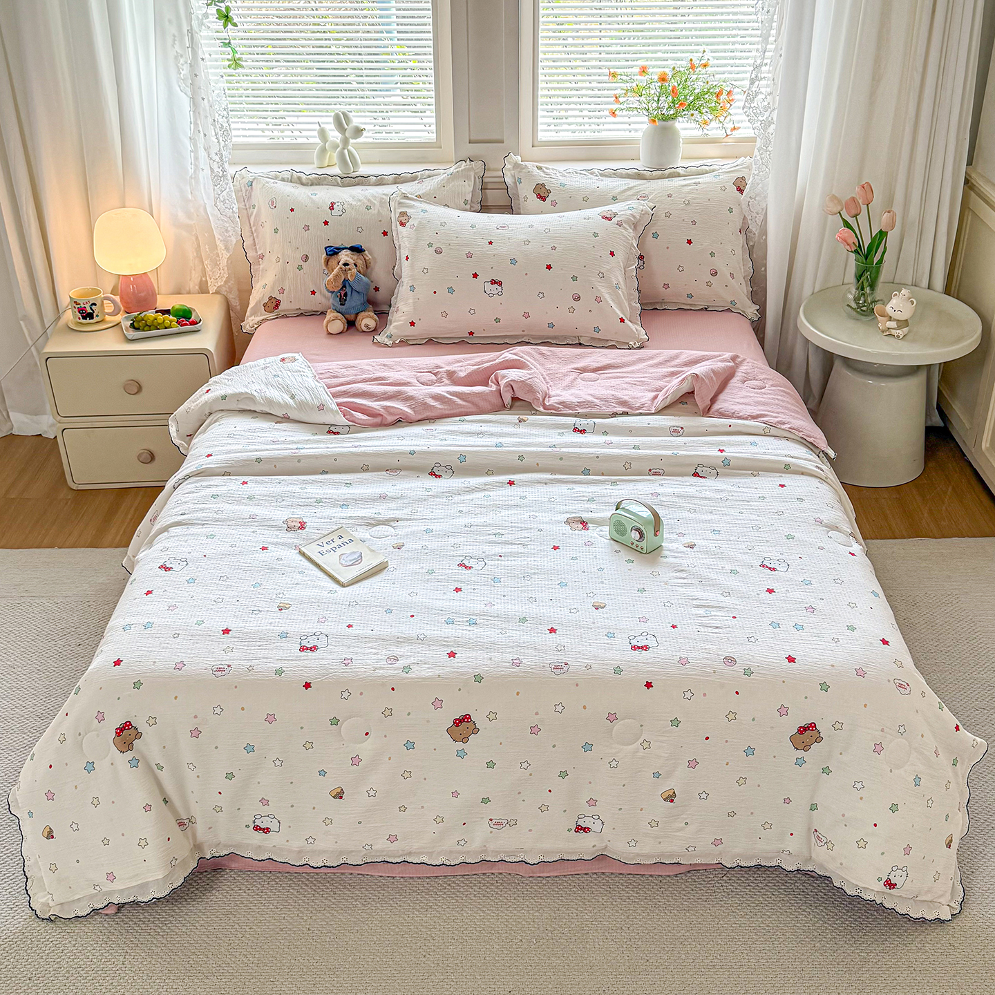 (总)梦纤绒 2026新款法式全棉花边夏被夏凉被空调被四件套,星织甜梦,豆蔻,蔷薇花,半岛玫瑰,粉黛,红樱桃,花间语,米朵,莫奈花园,奶狗乐园,浅夏,花园兔,童趣梦,星星人