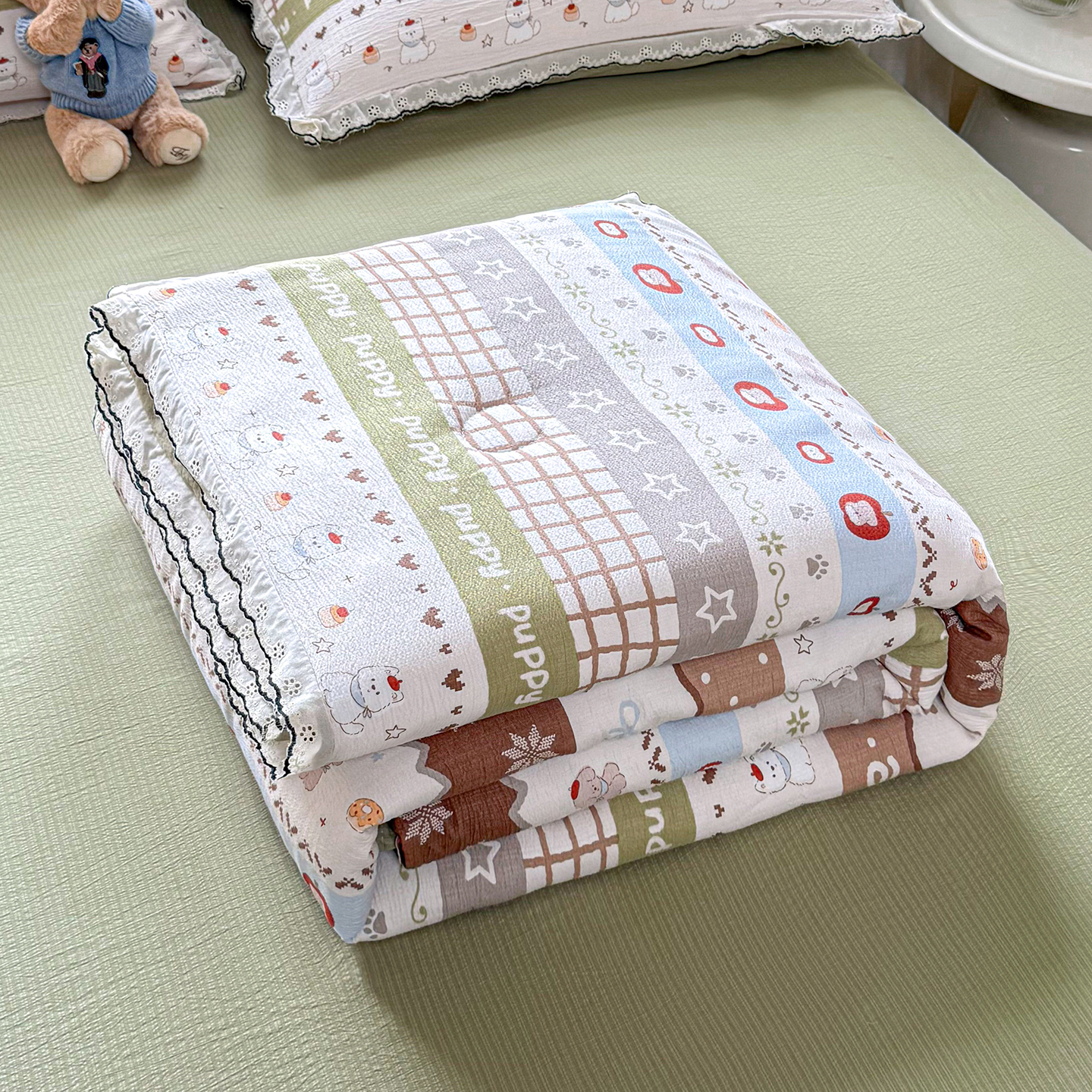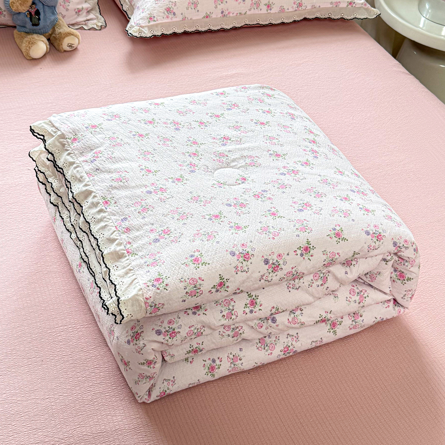 (总)梦纤绒 2026新款云感皱皱纱花边款夏被夏凉被空调被四件套,百福兰,春晓,可颂,太妃糖,小黑兔,春不晚,春日小熊,陌上花开,莫奈,若欢-绿,若欢紫色,舒芙蕾,田园拾趣-黄,兔小姐,郁金香小兔,波点小兔粉,波点小兔兰,情人节,十里桃花粉,十里桃花紫,夏天,运动健将熊,白茶-绿,桃花诺,白月光,缤纷几何,格格西高地,海盐蓝小格,黎漫,木槿绿,奶油泡芙,欧若拉,桃夭,甜茶,小晴天,芋泥紫小格,紫色蝴蝶结,心意,心意紫,小美满,乖乖象,一束温柔,半夏,春风里,豆蔻,蝴蝶梦,兰黛,山野栀子,素颜,微凉薄荷,心动,遇见,芝士奶酪,紫爱心,紫苏,花园兔,蜡笔画,初恋,莱茵河畔