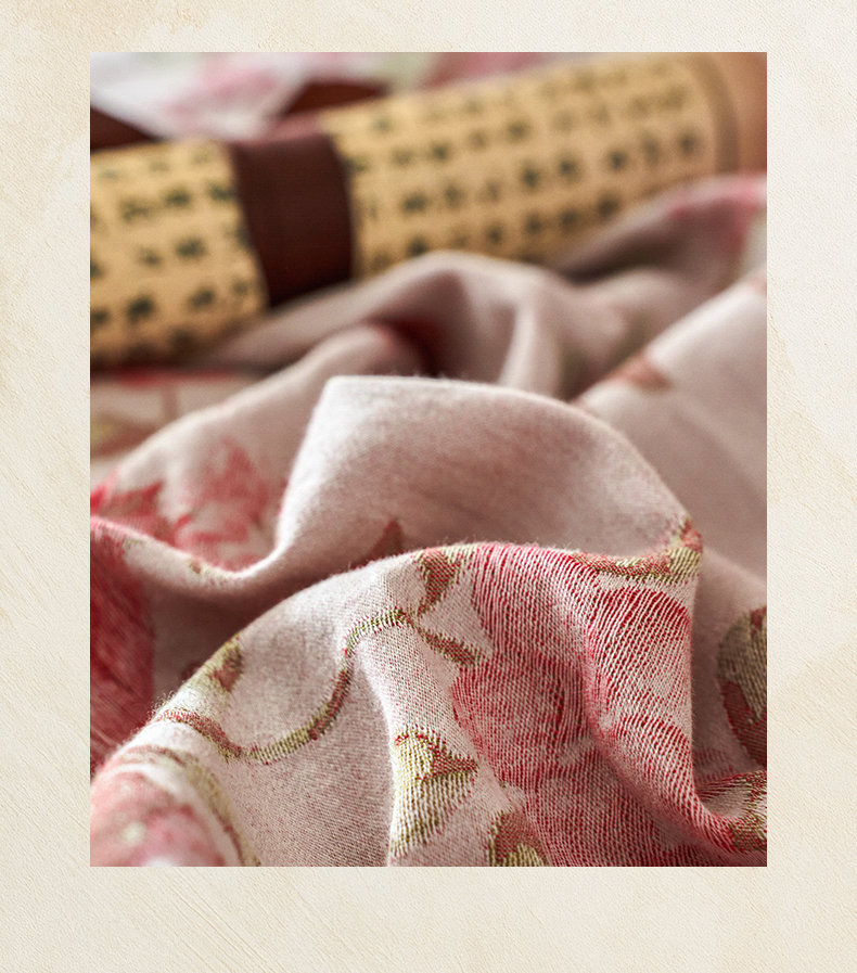 春皖家纺 2026新款全棉提花双层纱盘扣四件套-旗袍风系列 多子多福