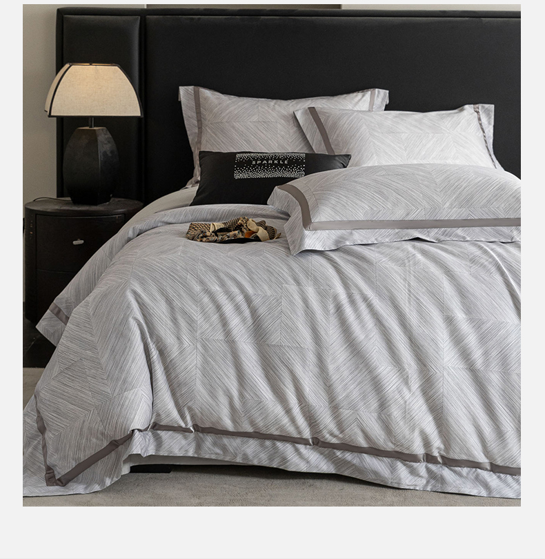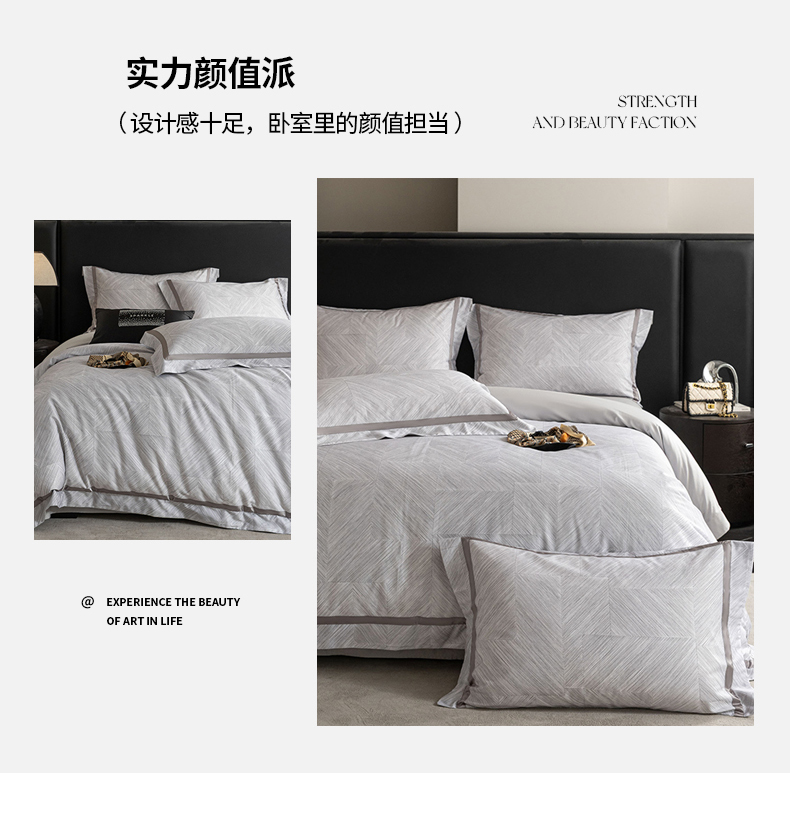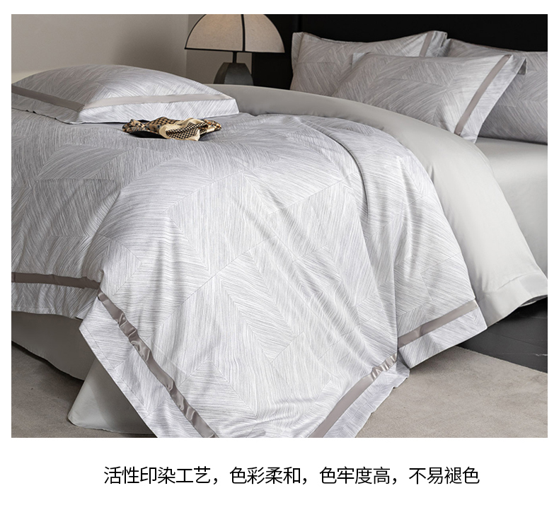 商品名称:新方向 【控价 提供买家秀】2026新款数码印花50s双股全棉贡缎长绒棉四件套-星河拍摄2 星河-爵士灰