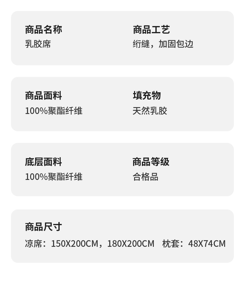 平铺180x200cm+枕套2只(0.5乳胶