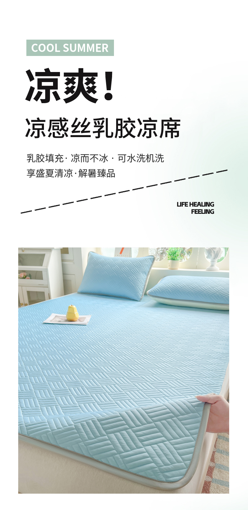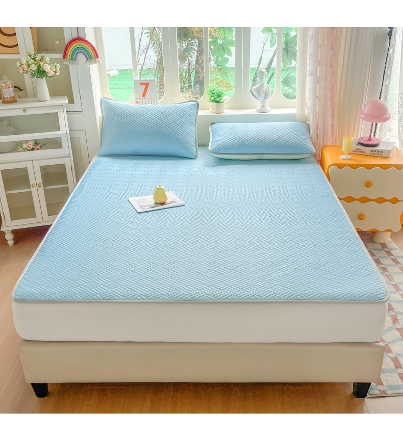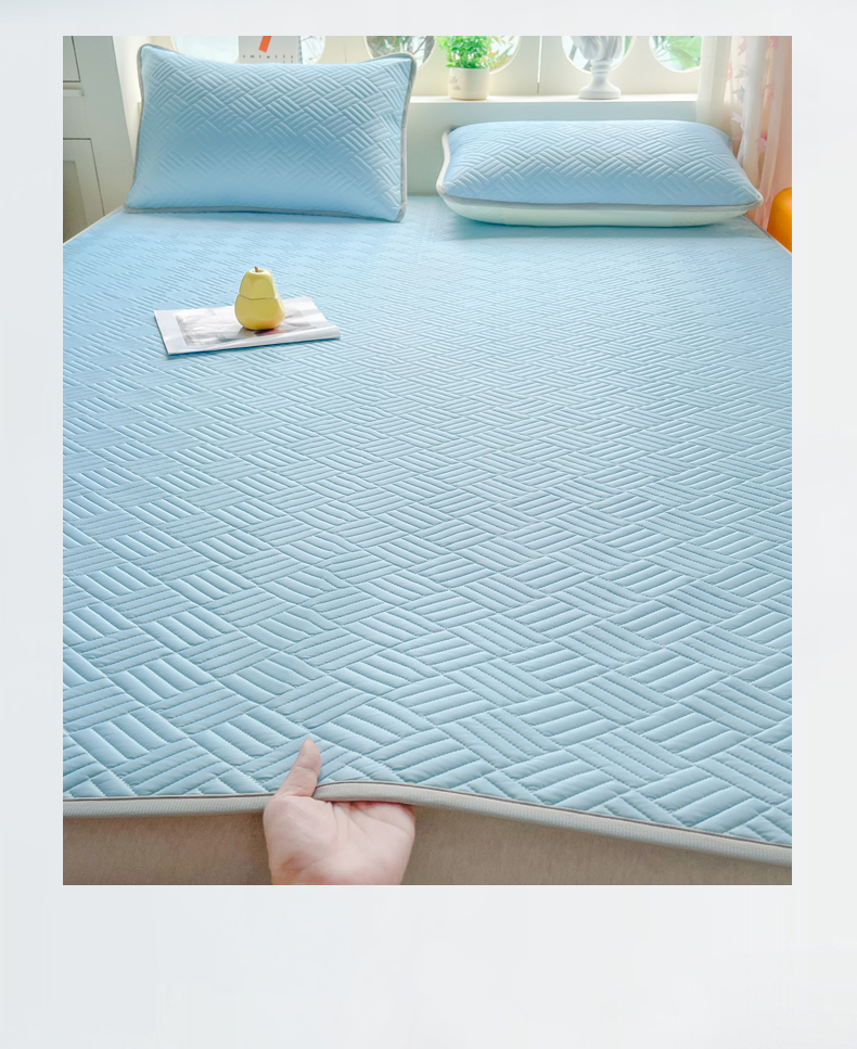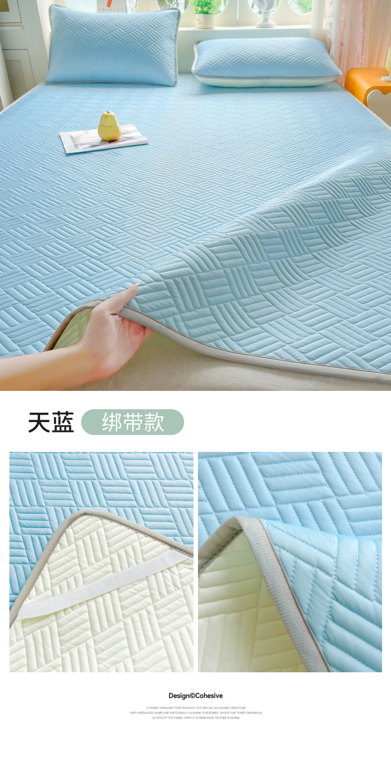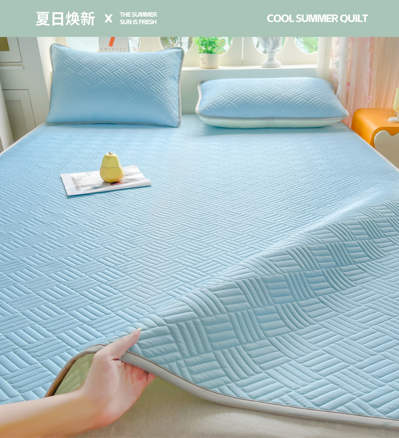 • 91家纺网 家纺一手货源 找家纺 丹本家纺 2026新款凉感夏被空调被凉席空调席冰丝席纯色床裙乳胶席三件套四件套菱形格 菱形格平铺款-天蓝