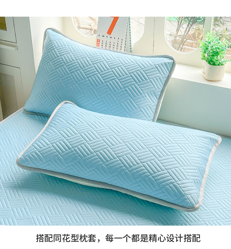 丹本家纺 2026新款凉感夏被空调被凉席空调席冰丝席纯色床裙乳胶席三件套四件套菱形格 菱形格平铺款-天蓝