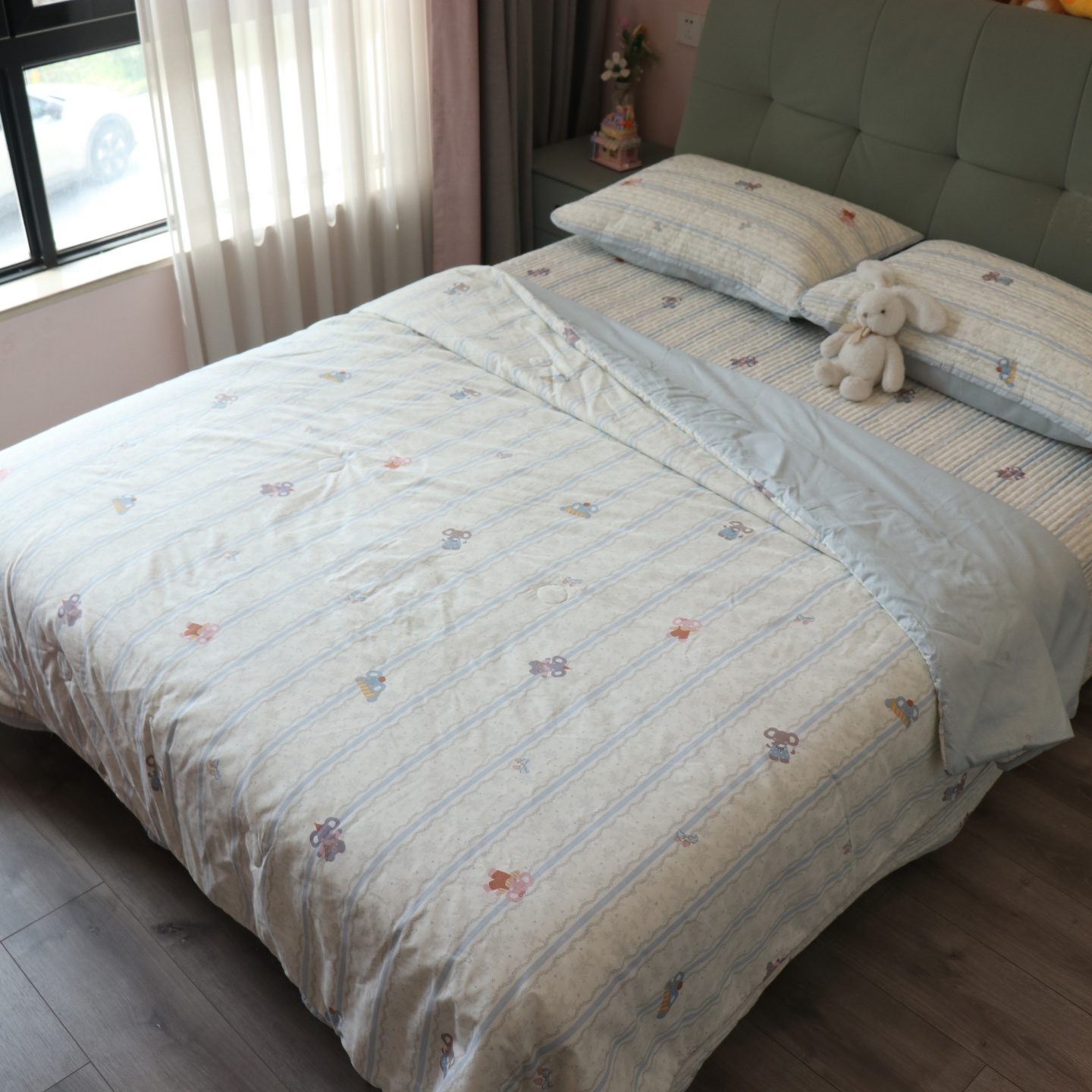 • 91家纺网 家纺一手货源 找家纺 (总)孑寐家纺 2026新款韩版水洗棉花边夏被被子被芯,童年木马,薄荷奶绿,抱抱熊,春晓,萌萌狮子,碎花狗狗