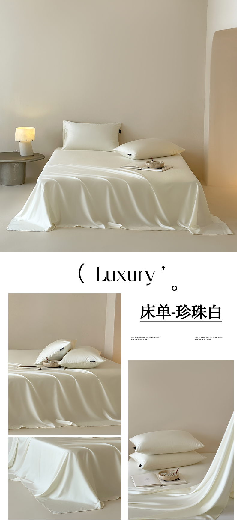 (总)三味舒屋 2026新款凉风小奢绸60S兰精天丝纯色单品系列-单床单床单单件,极光蓝,斯卡其粉,象牙白,雅灰,烟灰色,珍珠白,紫铜色,组合图仅供展示-不可下单