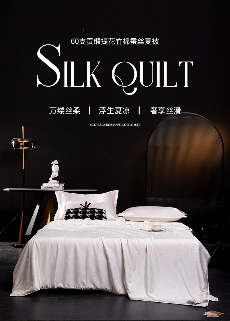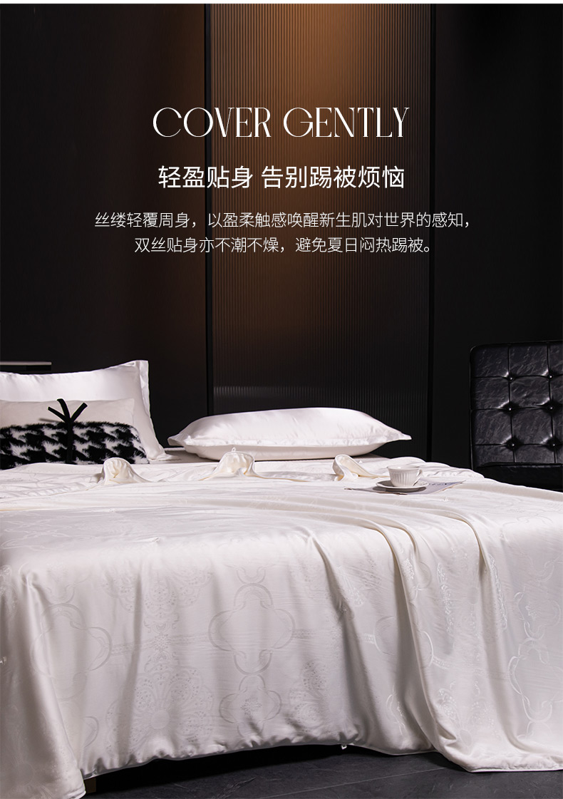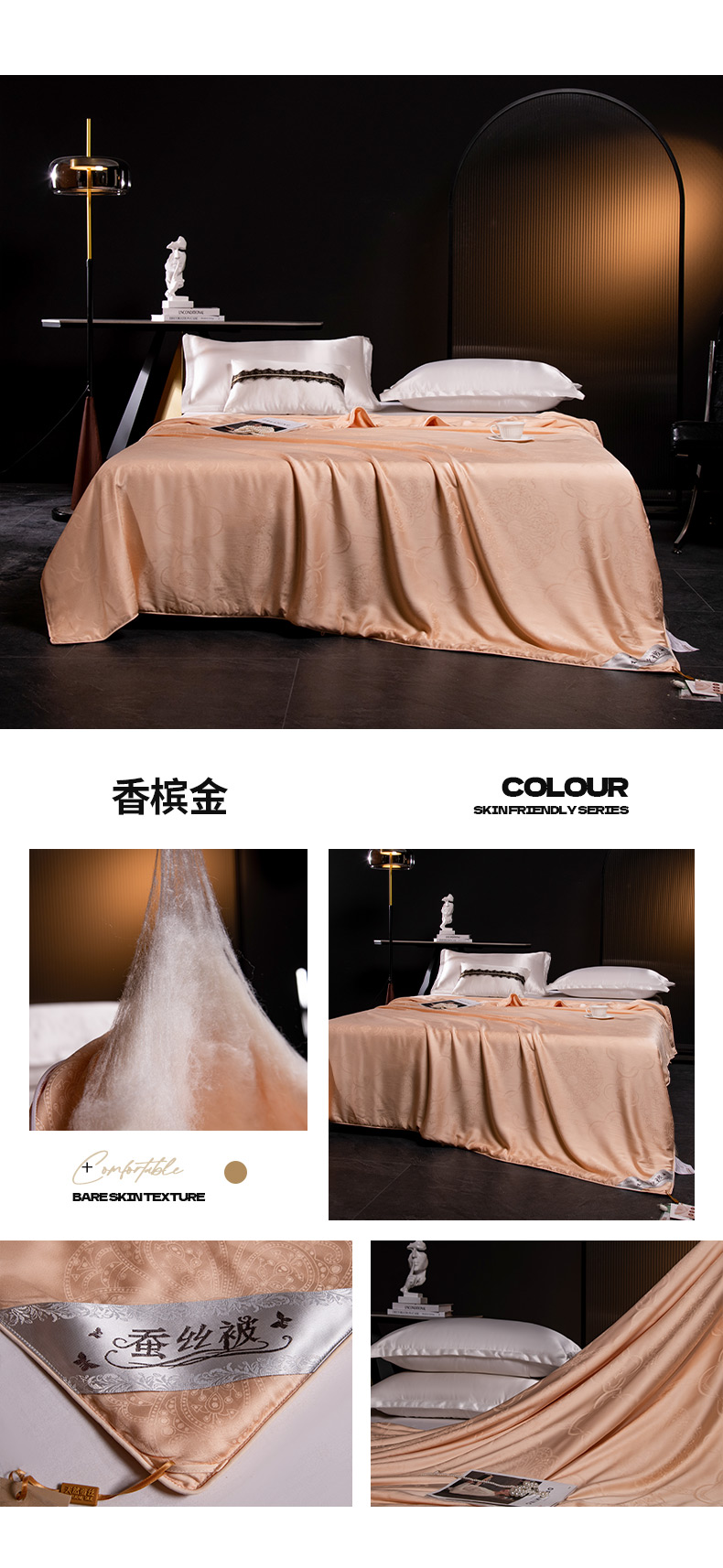 (总)合欢(原天一阁) 2026春夏新款60支贡缎提花竹棉100%蚕丝夏被春秋被,豆沙,香槟金,珍珠白