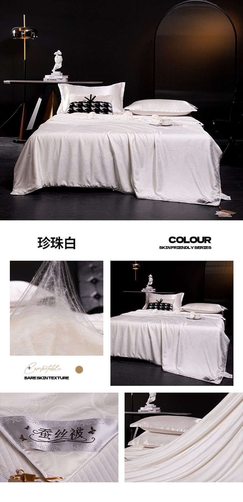 商品名称:合欢(原天一阁) 2026春夏新款60支贡缎提花竹棉100%蚕丝夏被春秋被 珍珠白
