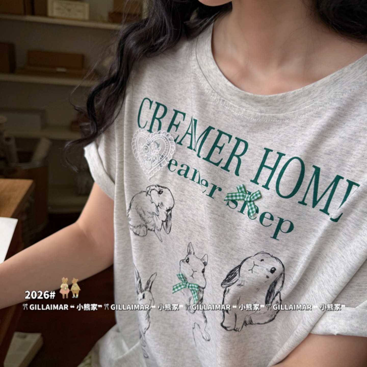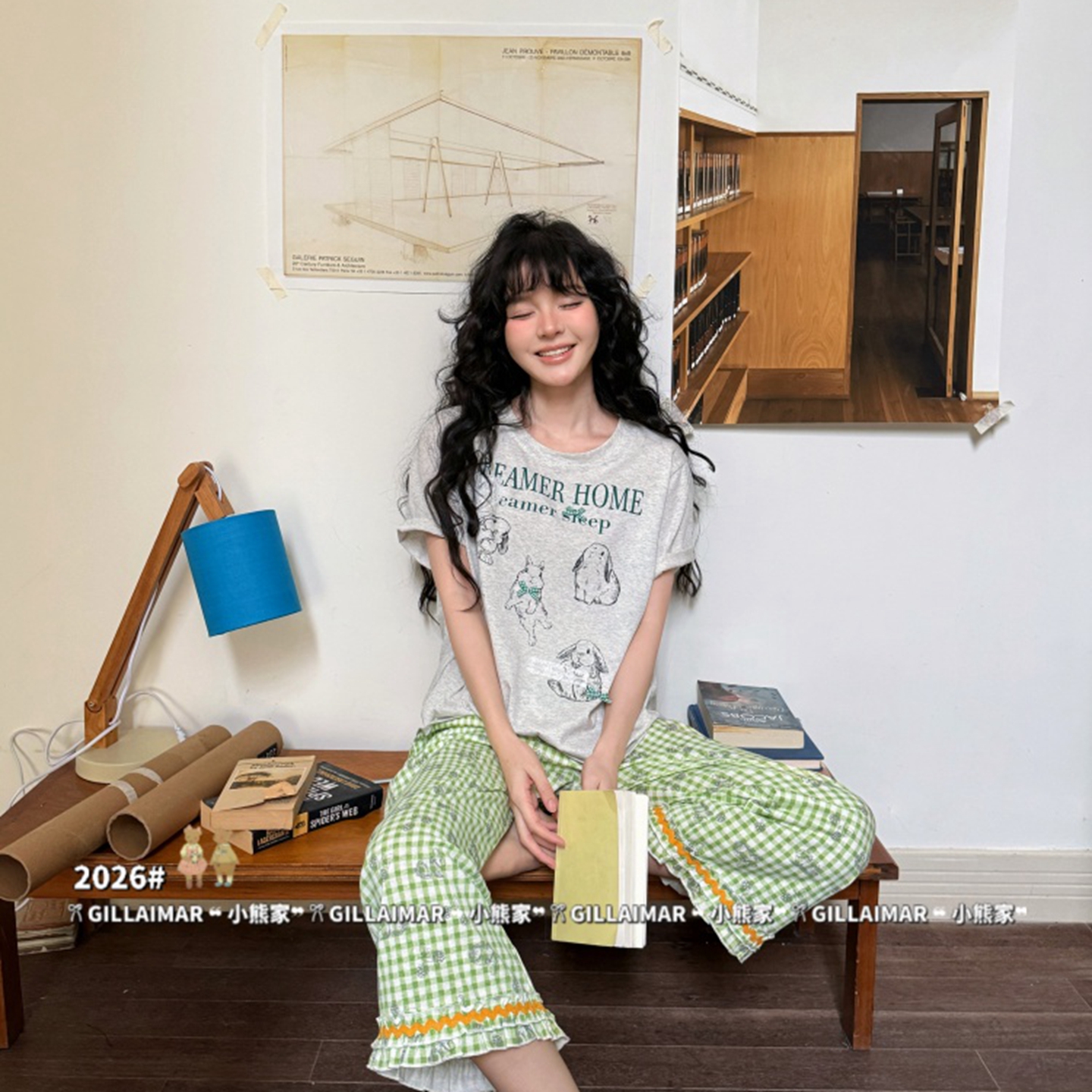 商品名称:妍景家居生活馆 2026新款莱赛尔冰丝棉小熊家-田园兔子深灰家居服 田园兔子-浅灰
