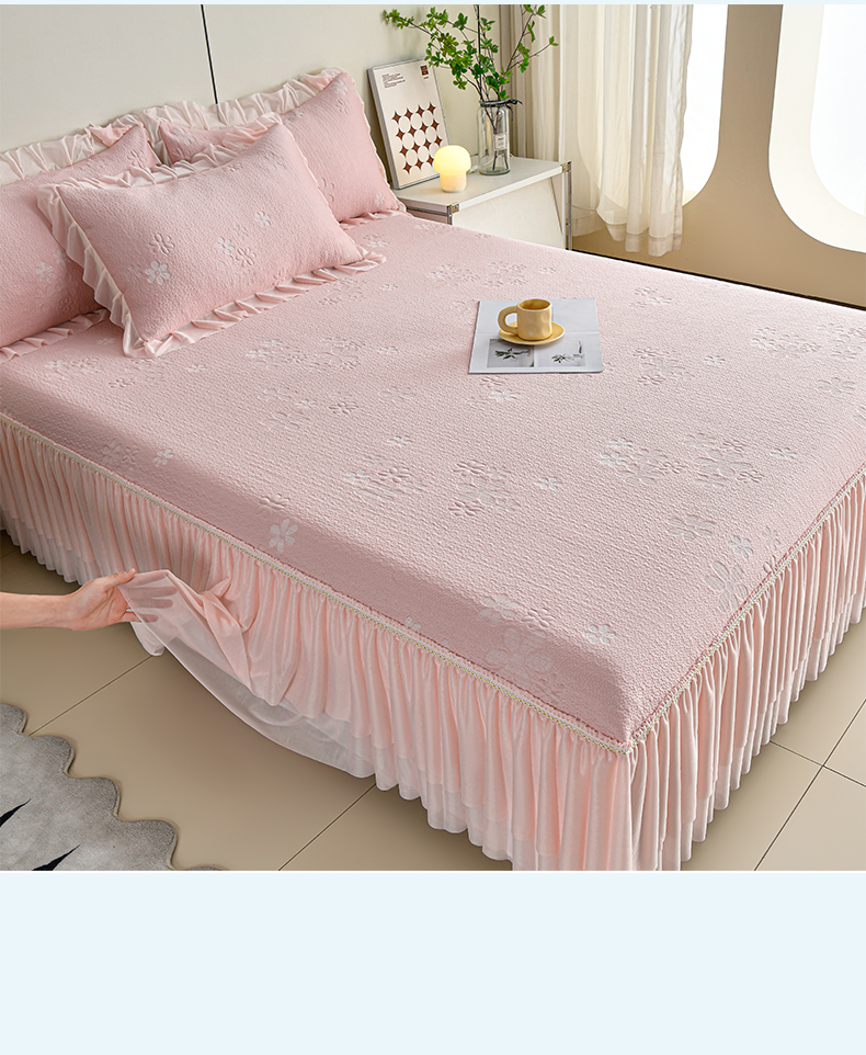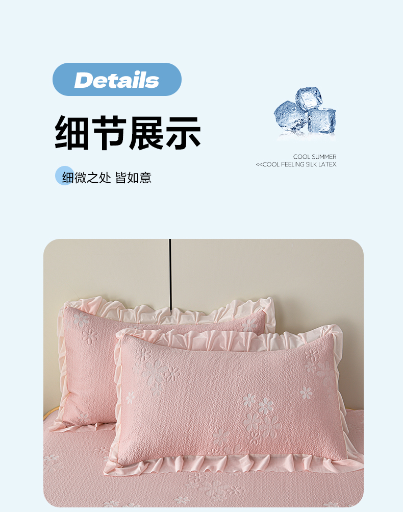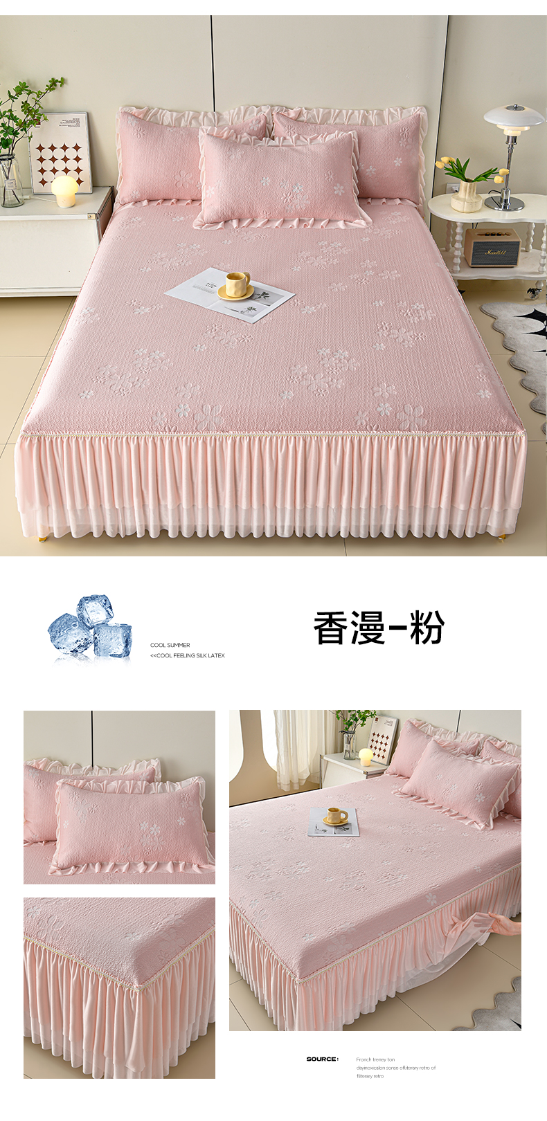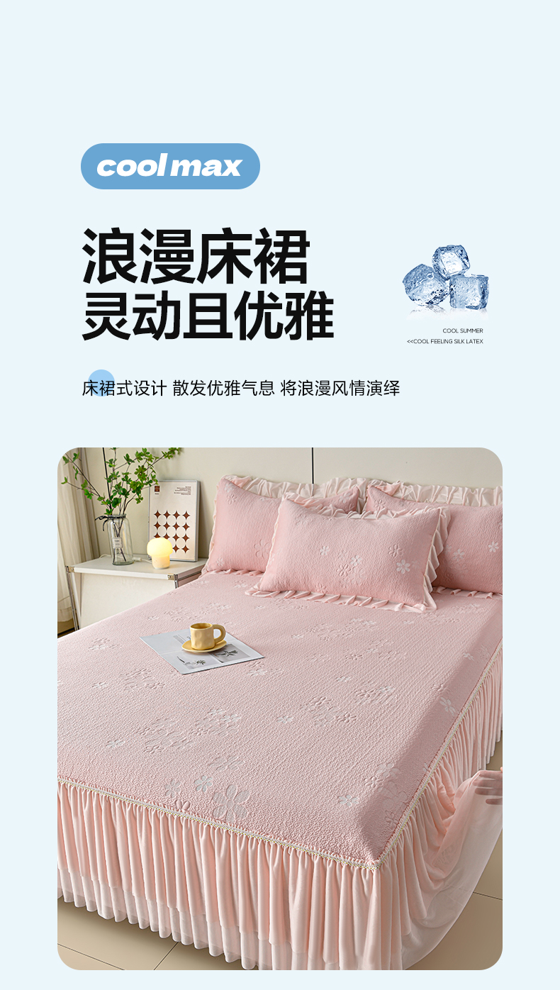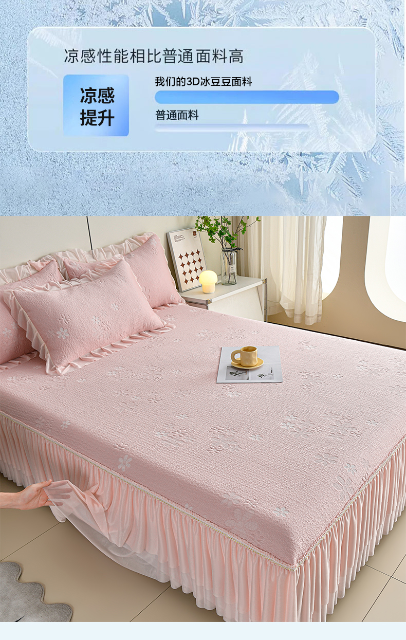 商品名称:畅畅家纺 2026春夏新款夏季3D立体冰豆豆凉席席子床裙三件套 香漫-粉