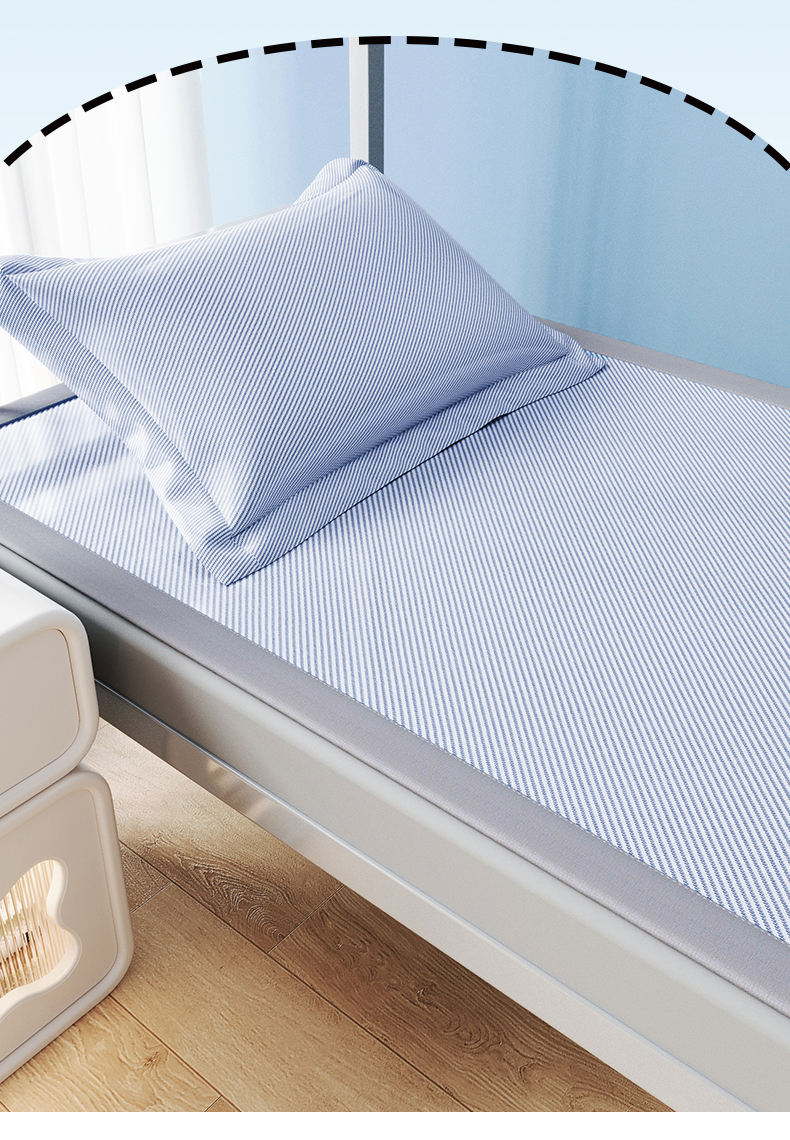 女子家纺 2026新款学生床斜纹冰丝刺绣款凉席席子凉席 冰山蓝
