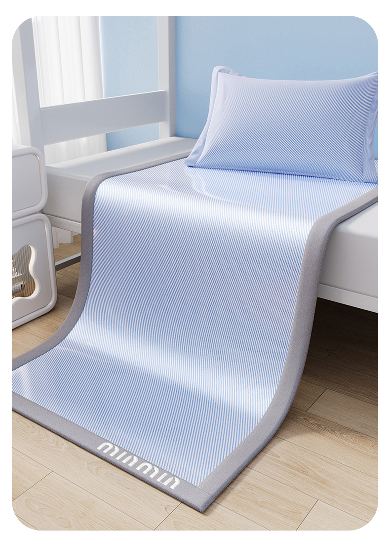 商品名称:女子家纺 2026新款学生床斜纹冰丝刺绣款凉席席子凉席 冰山蓝