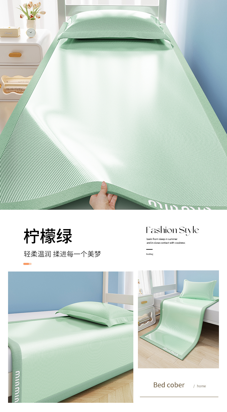 (总)女子家纺 2026新款学生床斜纹冰丝刺绣款凉席席子凉席,冰山蓝,凉茶绿,奶茶咖,宁静蓝,柠檬绿,杏仁咖,雪花灰,樱花粉