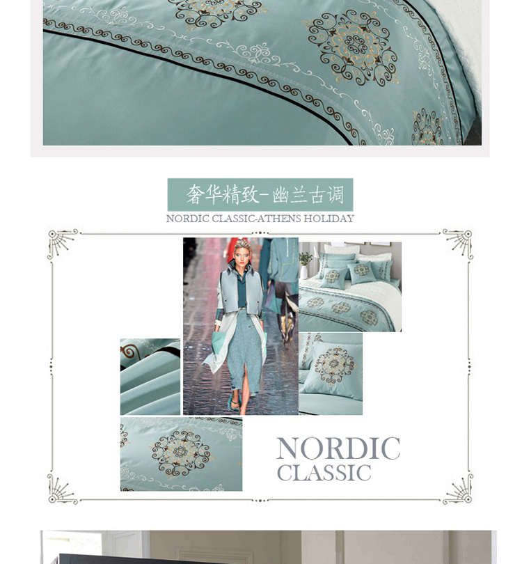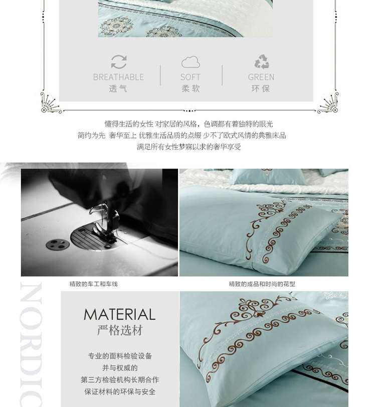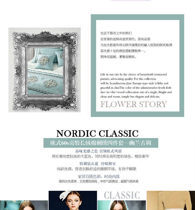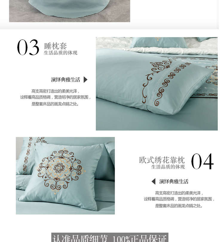 (总)兴美佳家纺 欧式60s贡缎长绒棉刺绣四件套,幽兰古调-蓝,幽兰古调-紫