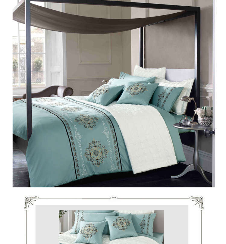 兴美佳家纺 欧式60s贡缎长绒棉刺绣四件套幽兰古调-蓝