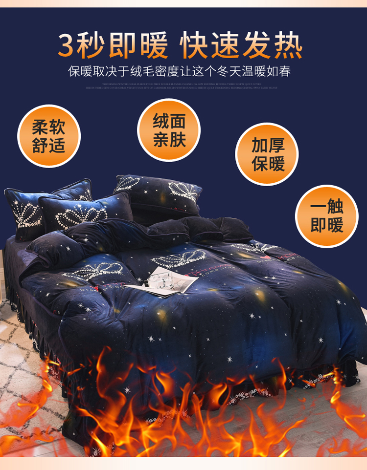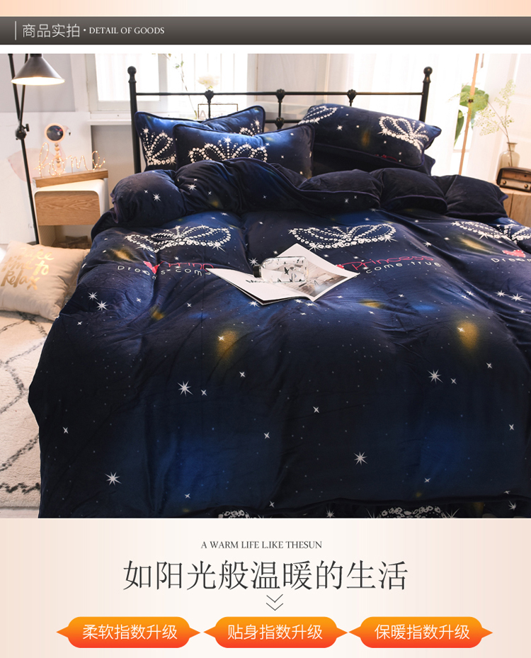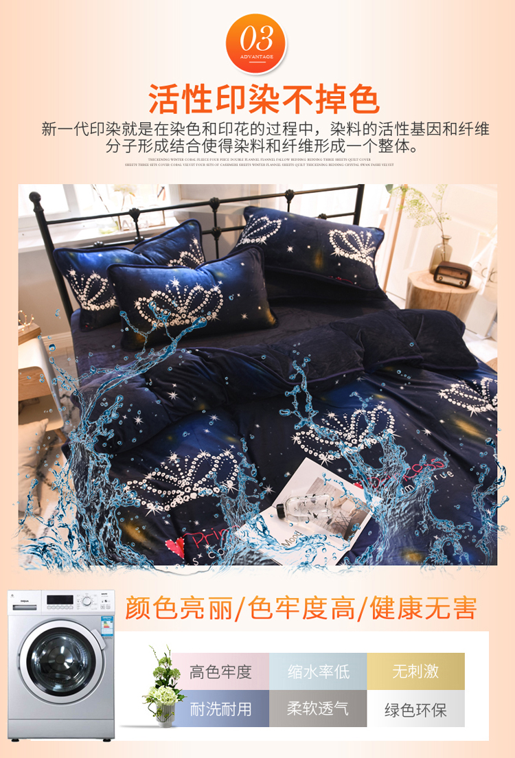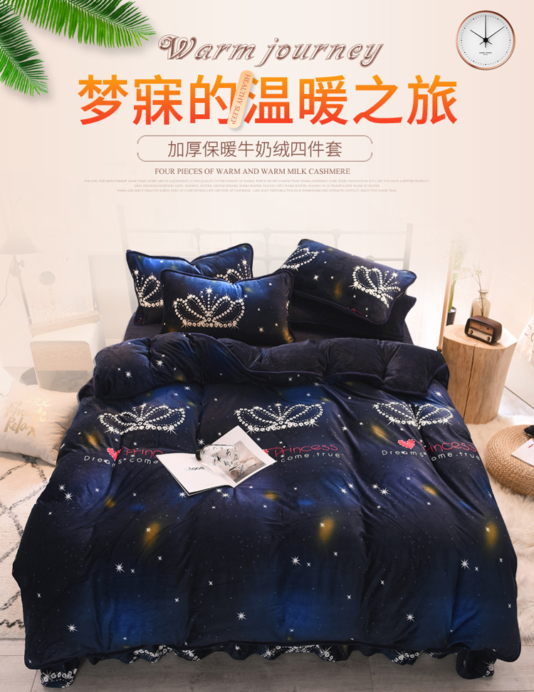 商品名称:绒世界 2018秋冬印花牛奶绒爆款四件套第二版 皇冠