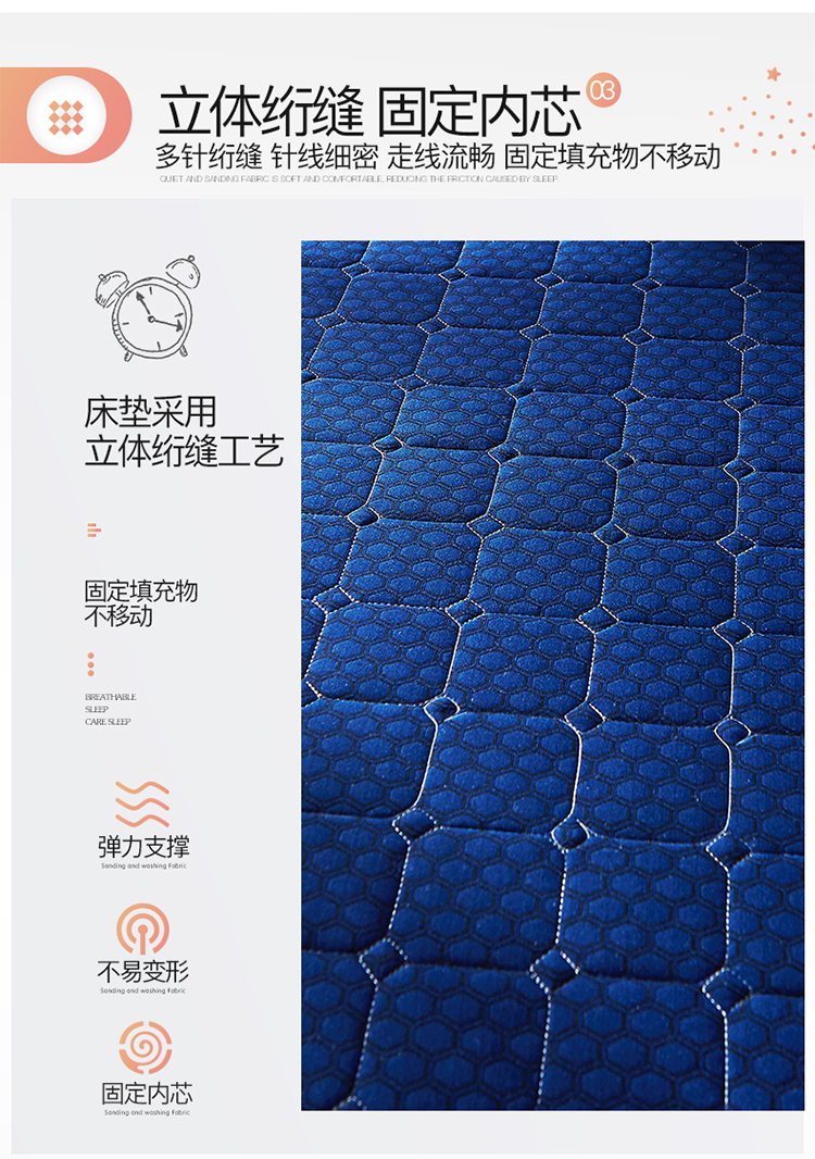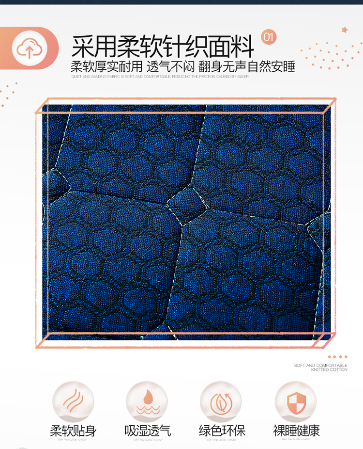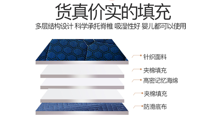 商品名称:欣罗兰 2022新款立体针织记忆棉床垫 蓝色