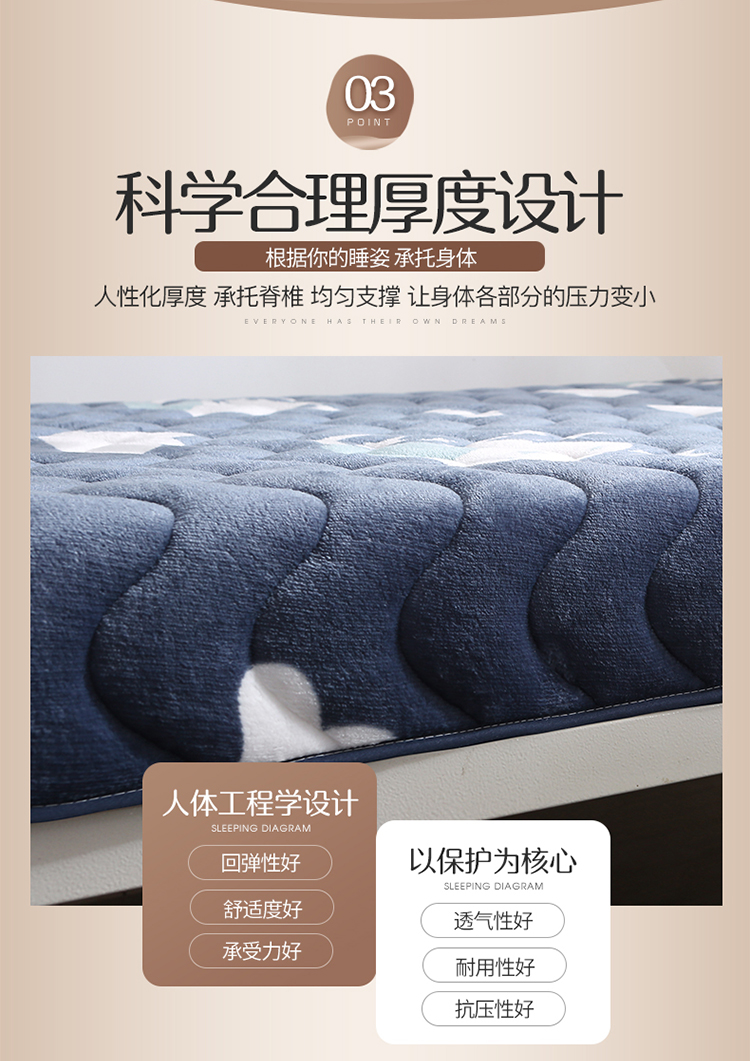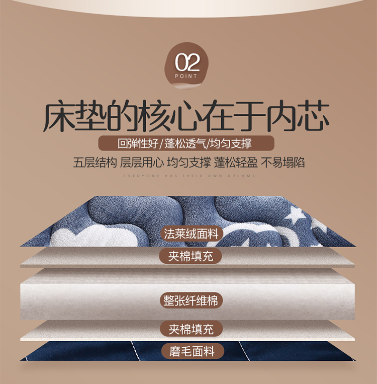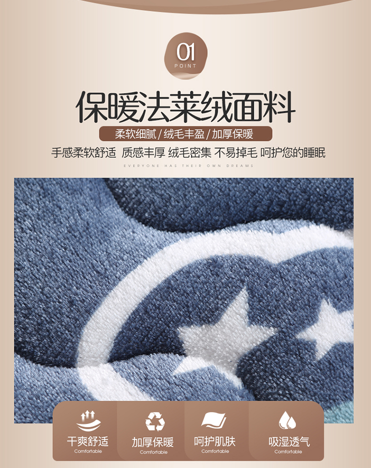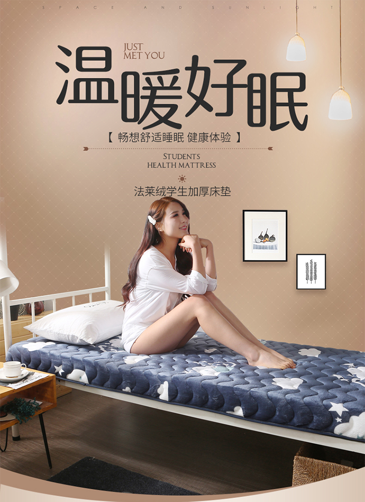 商品名称:欣罗兰 2022新款单边学生法莱绒床垫 云朵