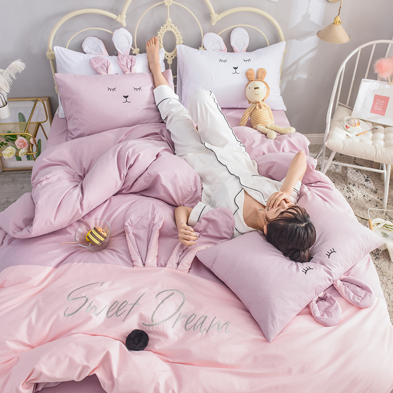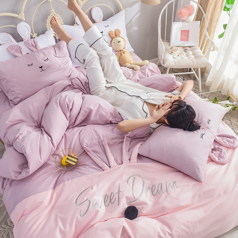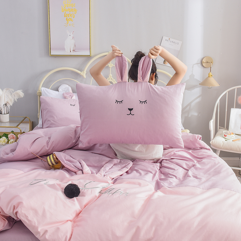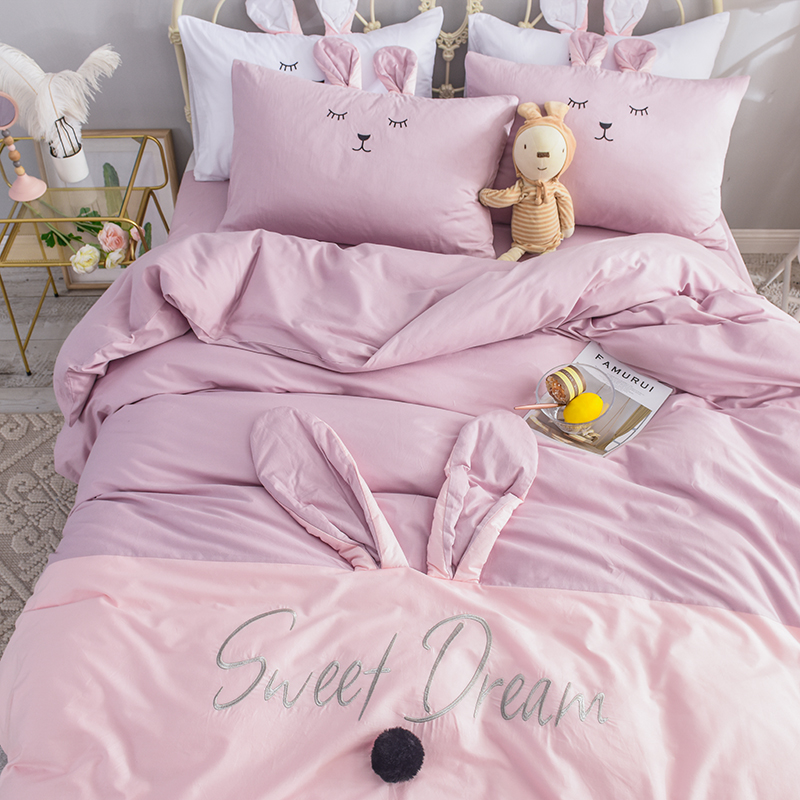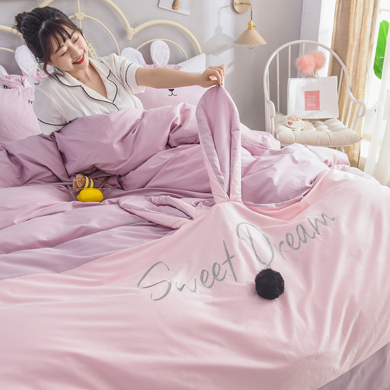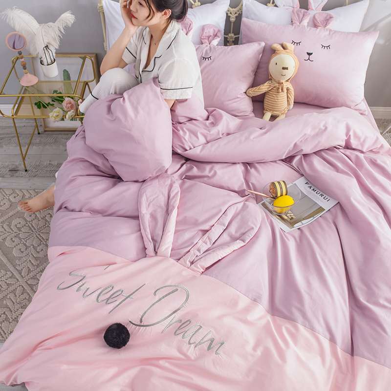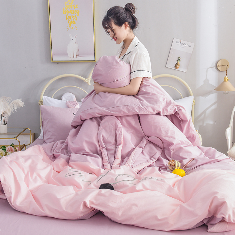 漫调家纺 2019新款ins爆款全棉兔耳朵四件套 豆沙粉