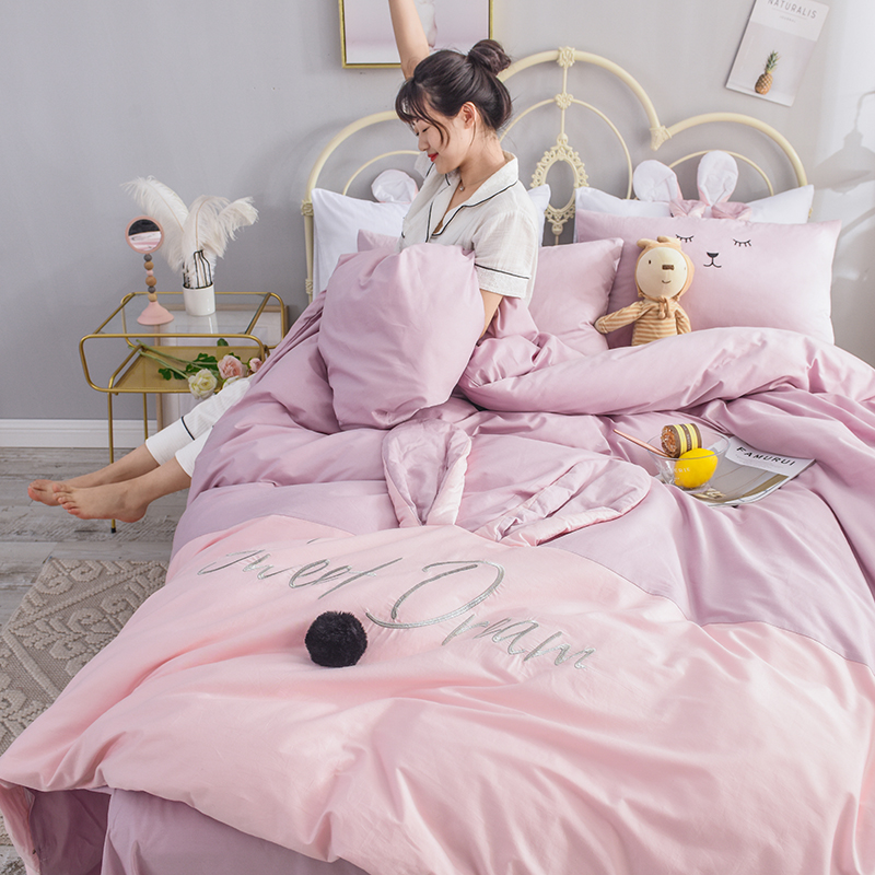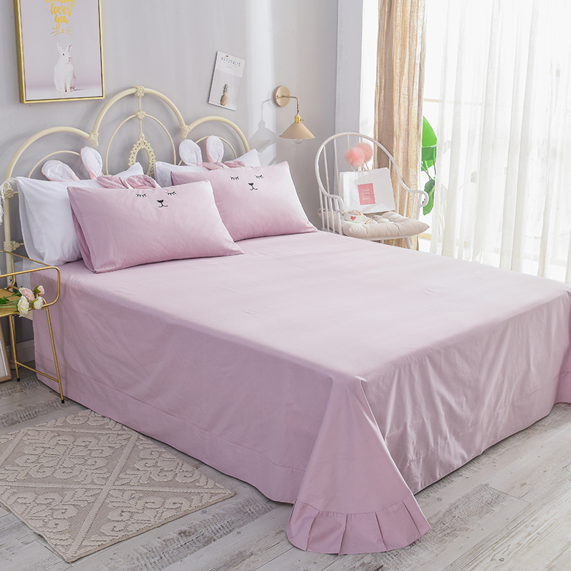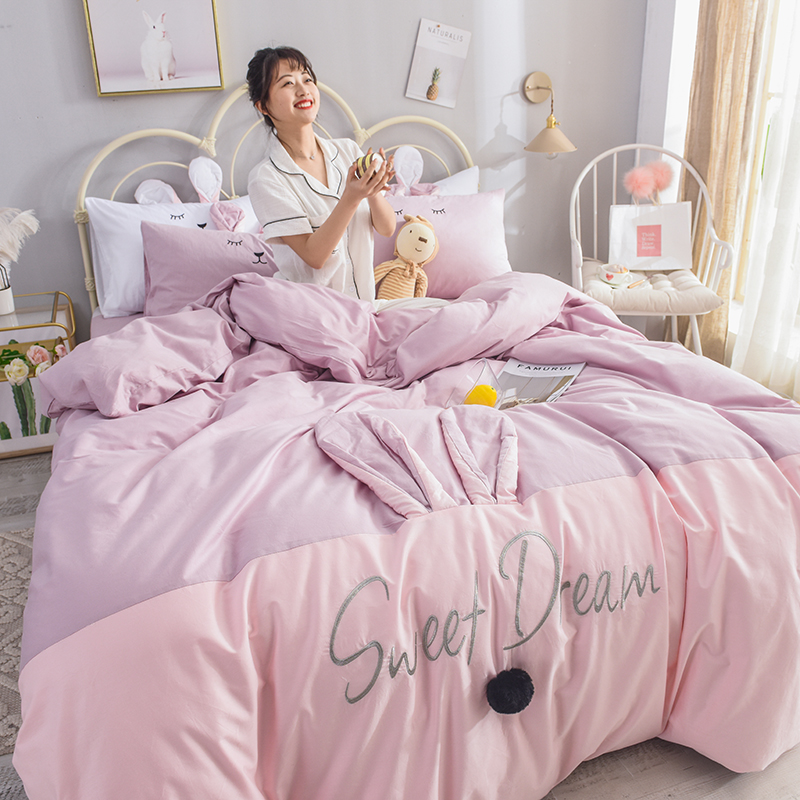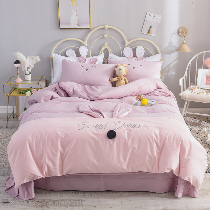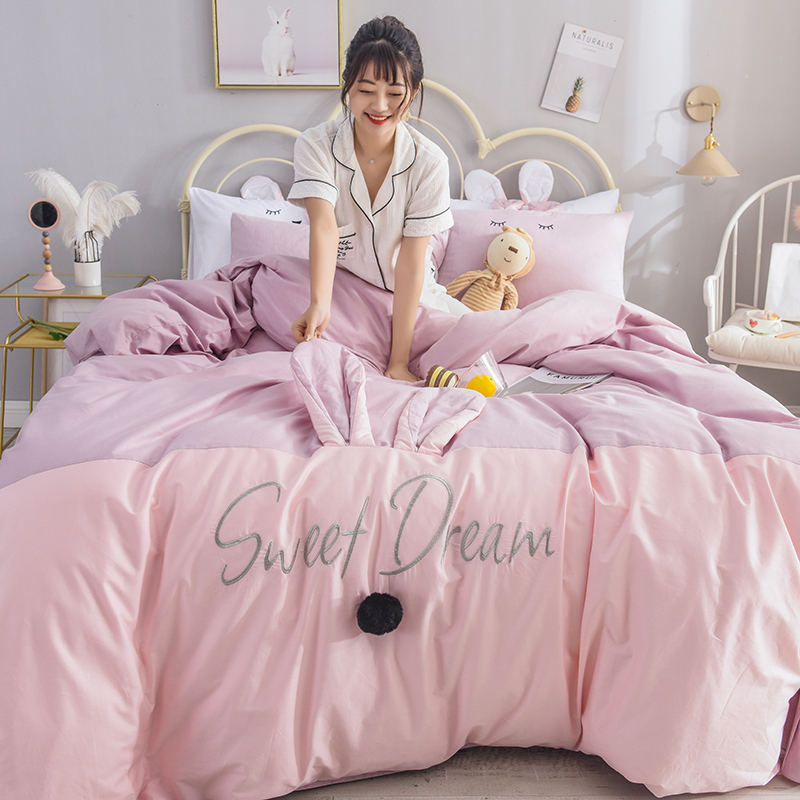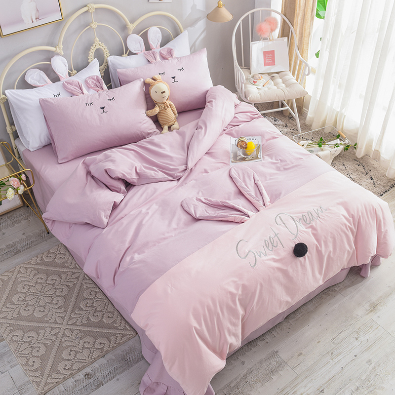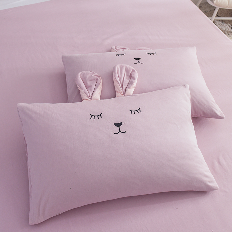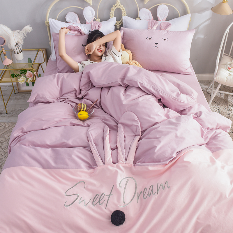 漫调家纺 2019新款ins爆款全棉兔耳朵四件套 豆沙粉