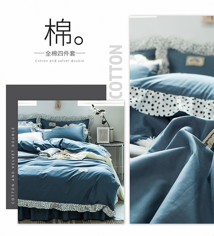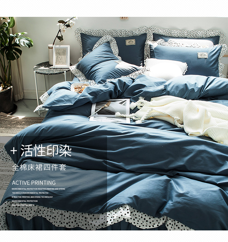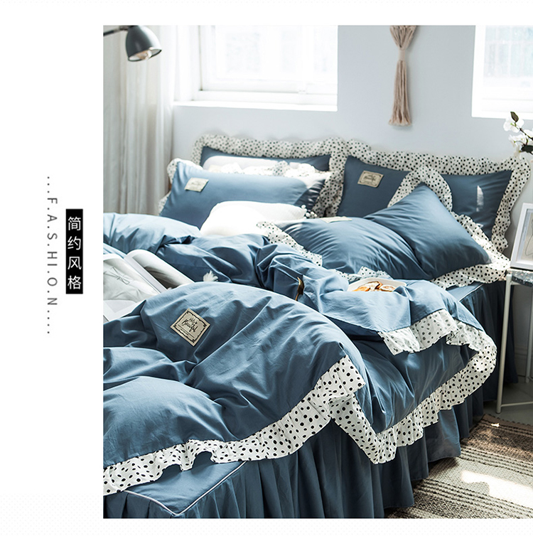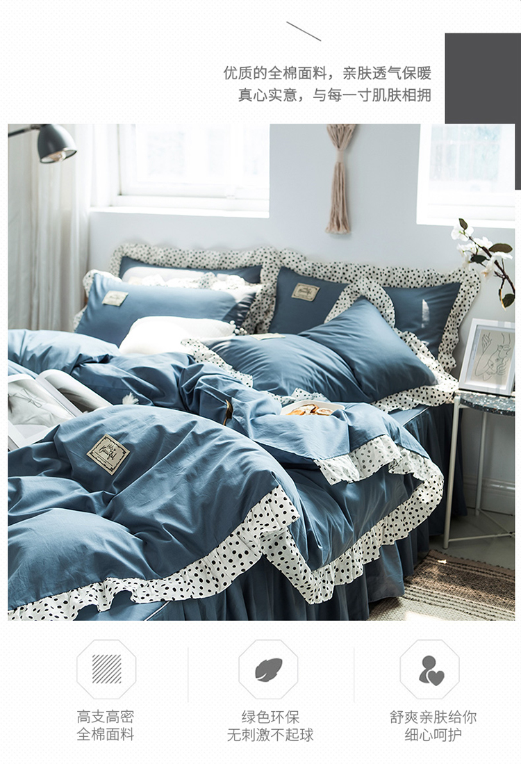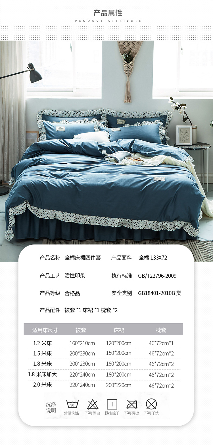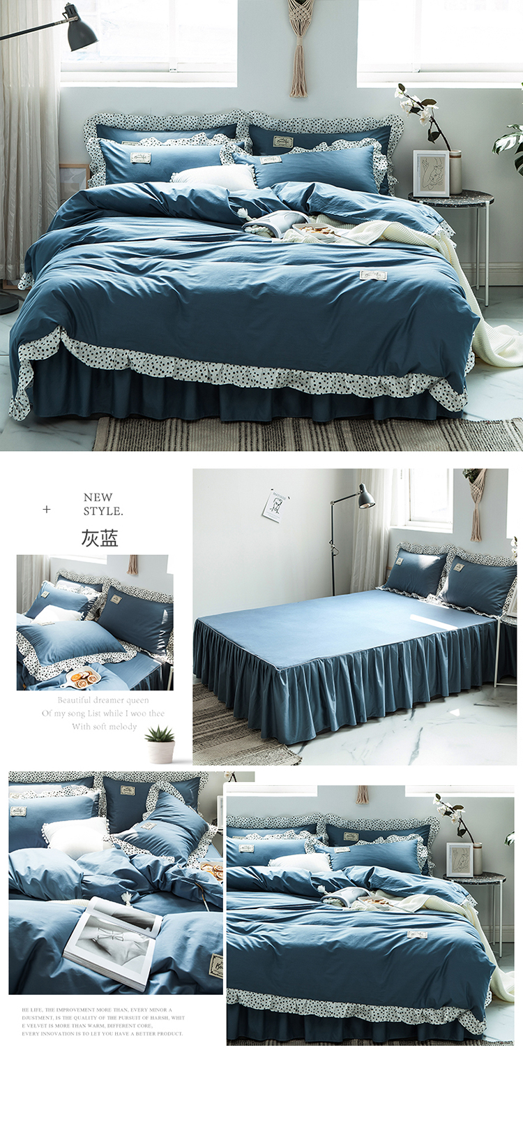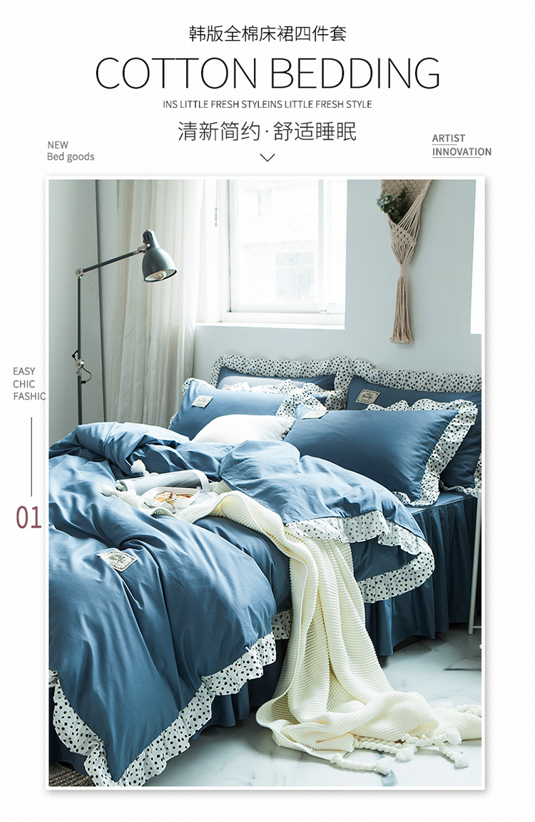 商品名称:万盛家纺新款韩版全棉单品单层床裙 灰蓝