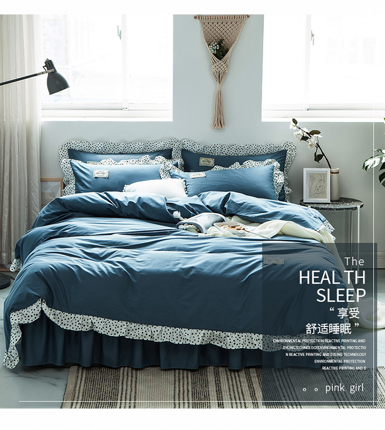 万盛家纺新款韩版全棉单品单层床裙 灰蓝