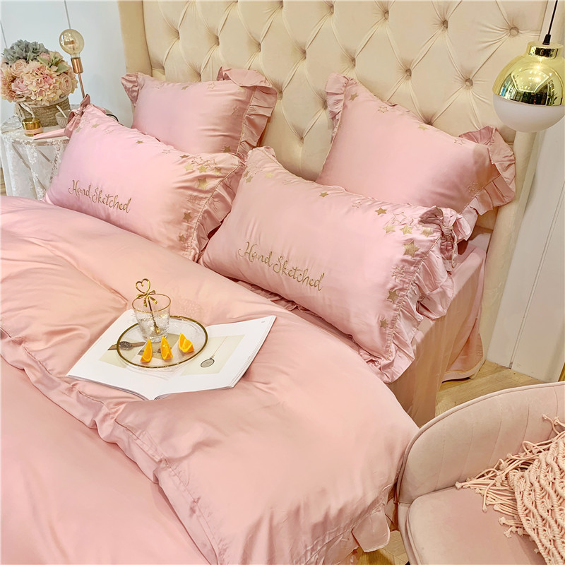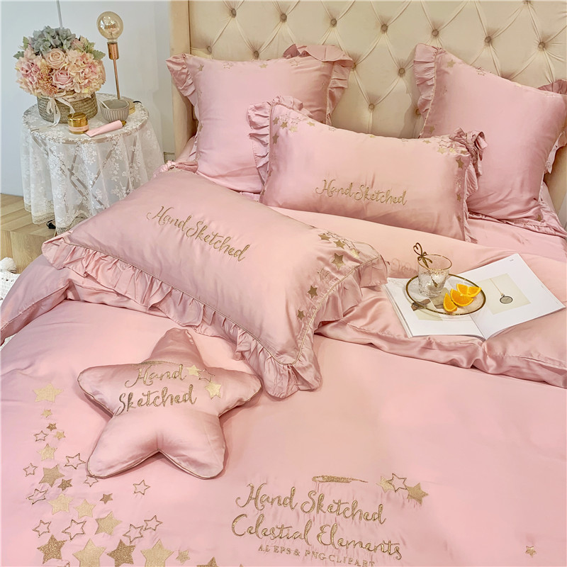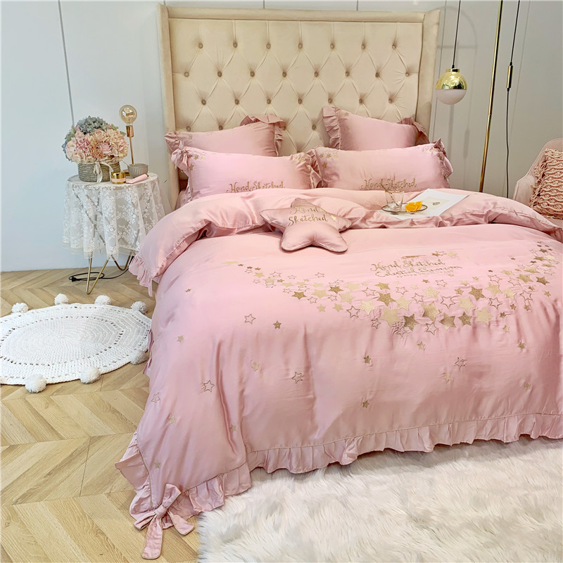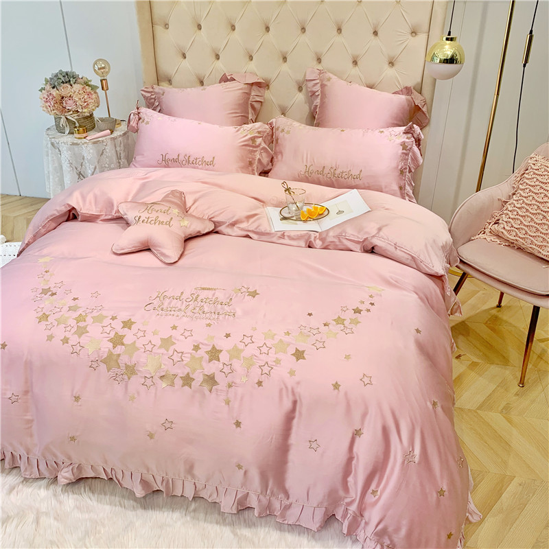 当前位置: 91家纺网 > 商品网购 > 床品套件 > 四件套 > 莱赛尔四件套 > 馨蕊家居 2021新款80S兰精天丝四件套星愿-萝莉粉