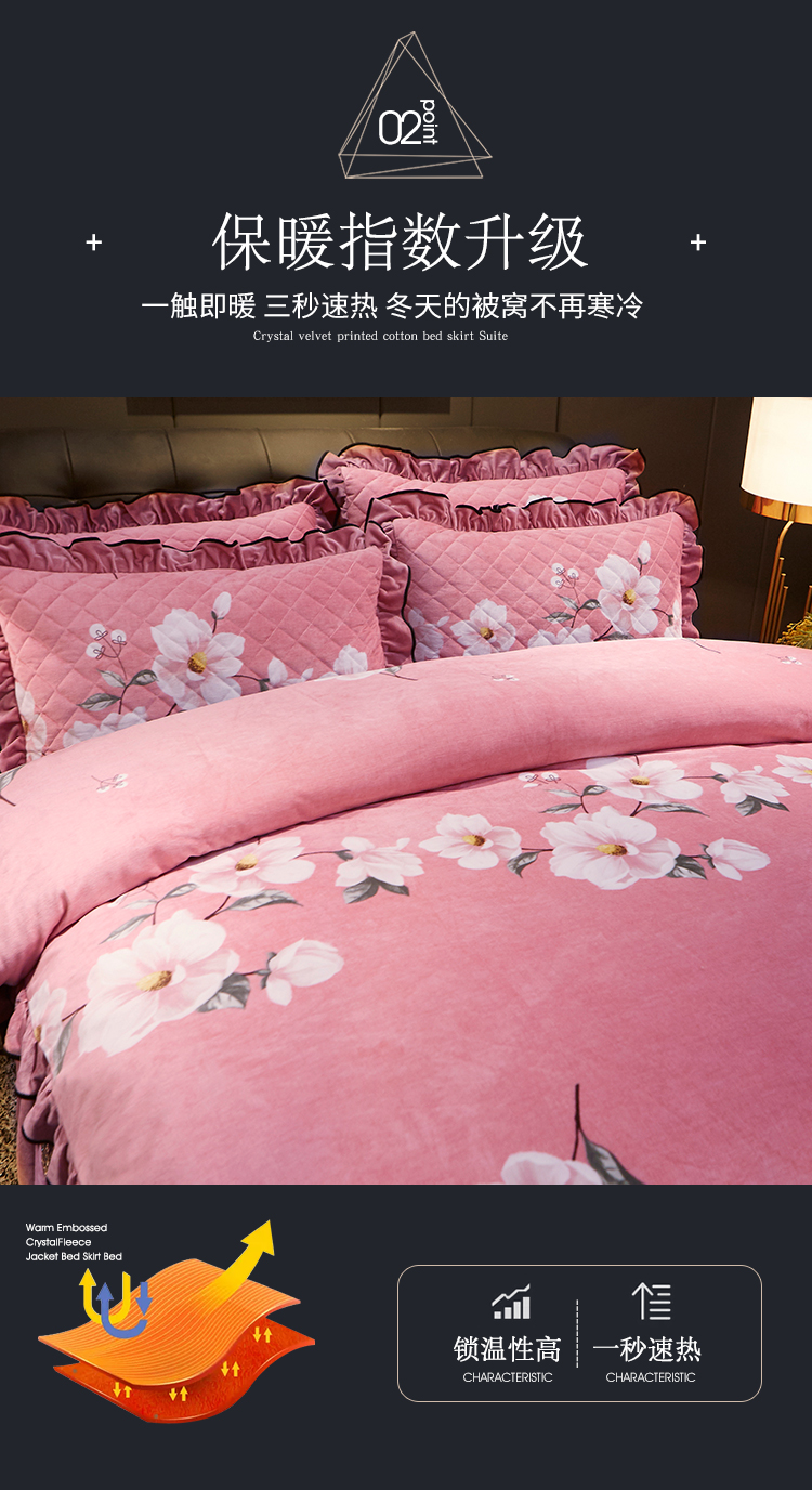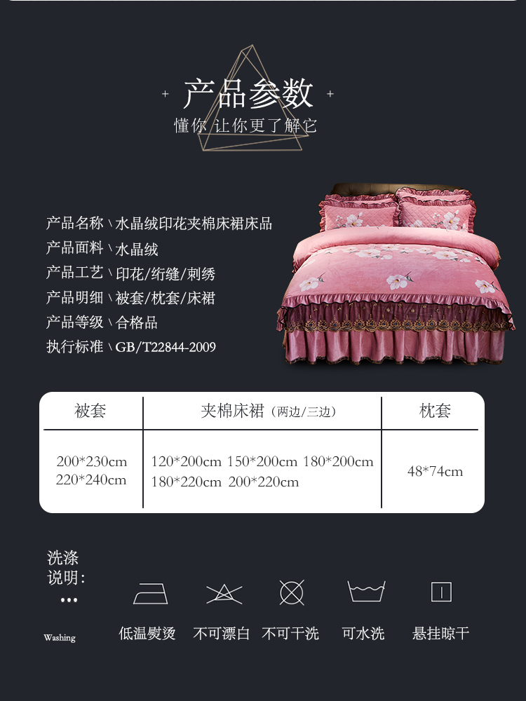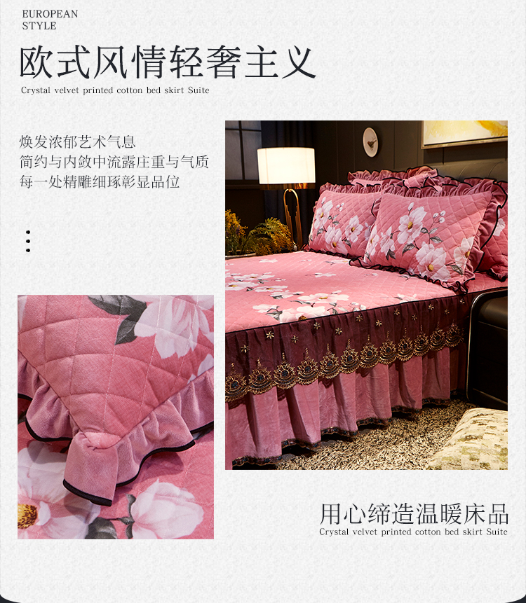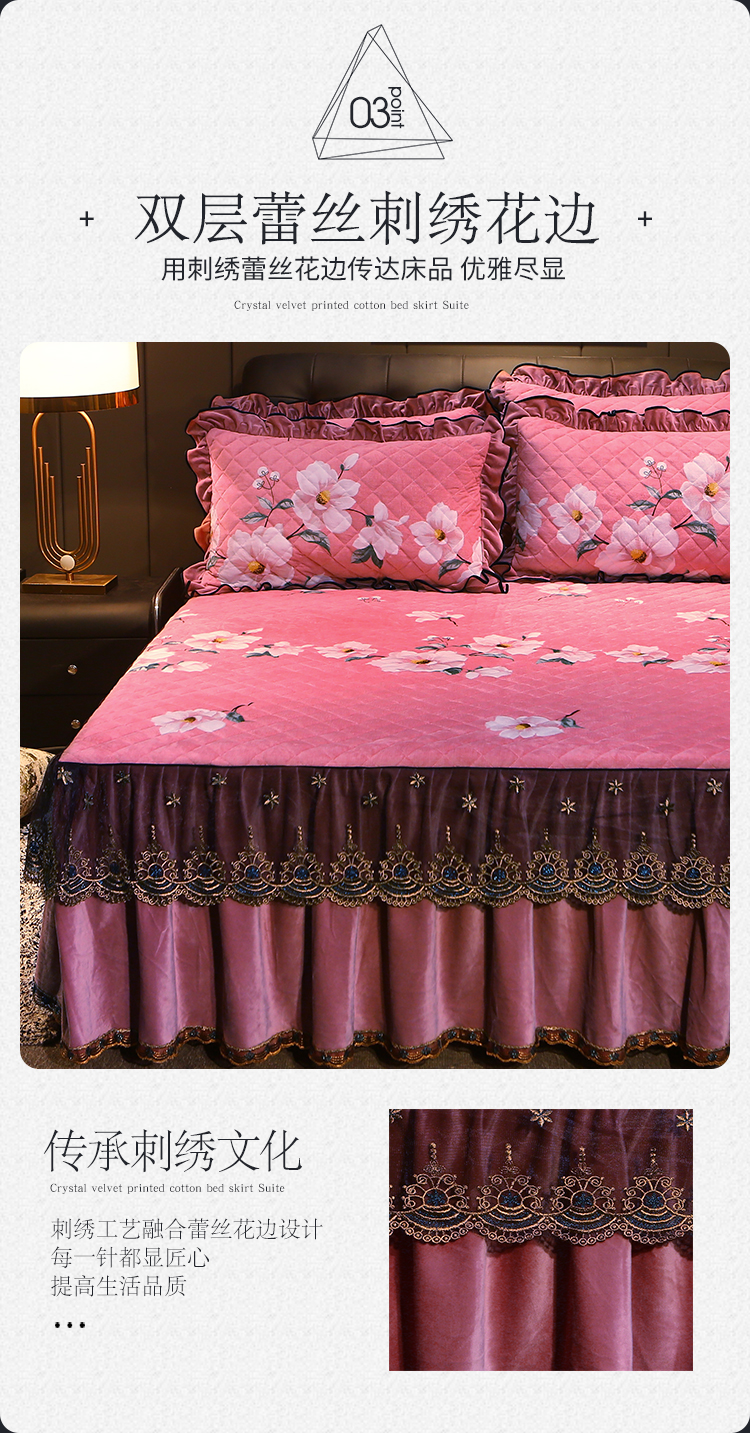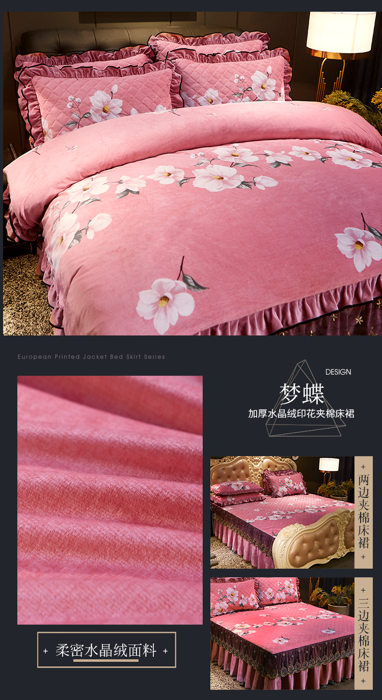 商品名称:宜凡家纺 2019新款水晶绒印花系列床裙四件套 梦蝶