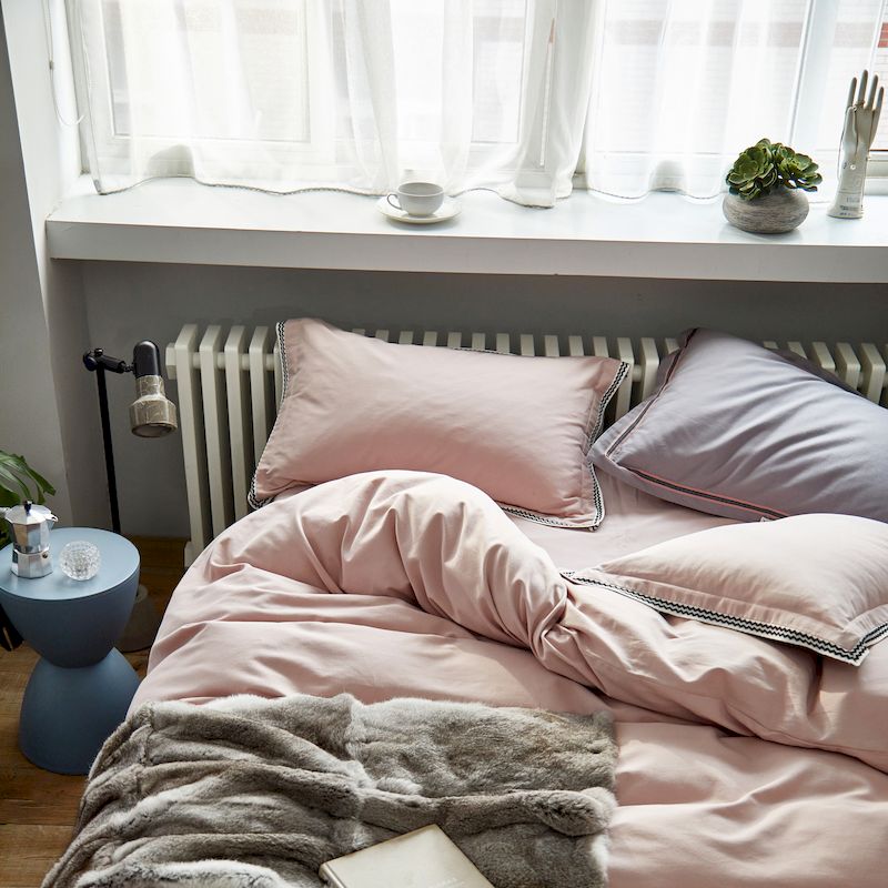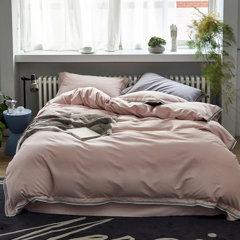 (总)涞澳家纺 2026新款全棉纯棉水洗棉纯色花边款四件套-珠若,珠若-米白,珠若-浅灰,珠若-浅绿,珠若-浅玉