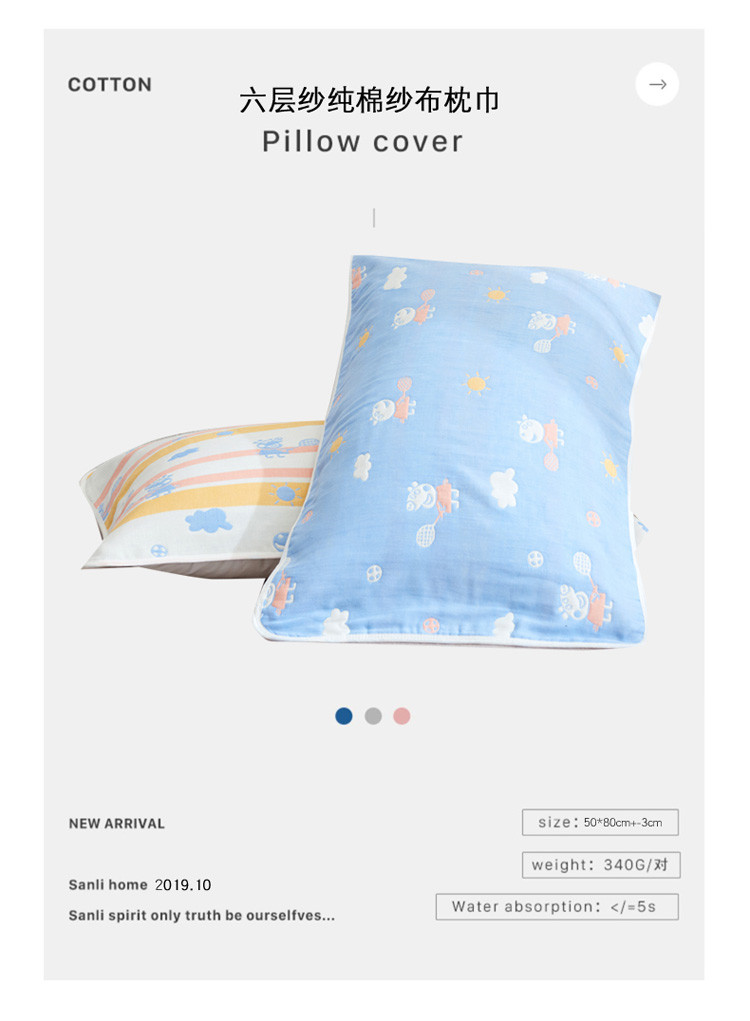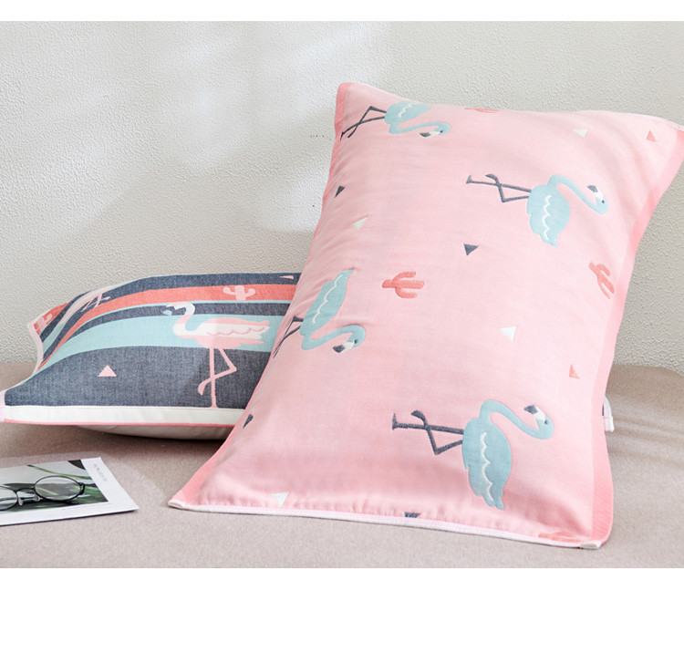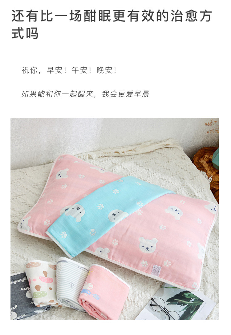 • 91家纺网 家纺一手货源 找家纺 朴尔全棉一对装成人情侣婴童学生六层纱布枕巾小猪琪琪粉