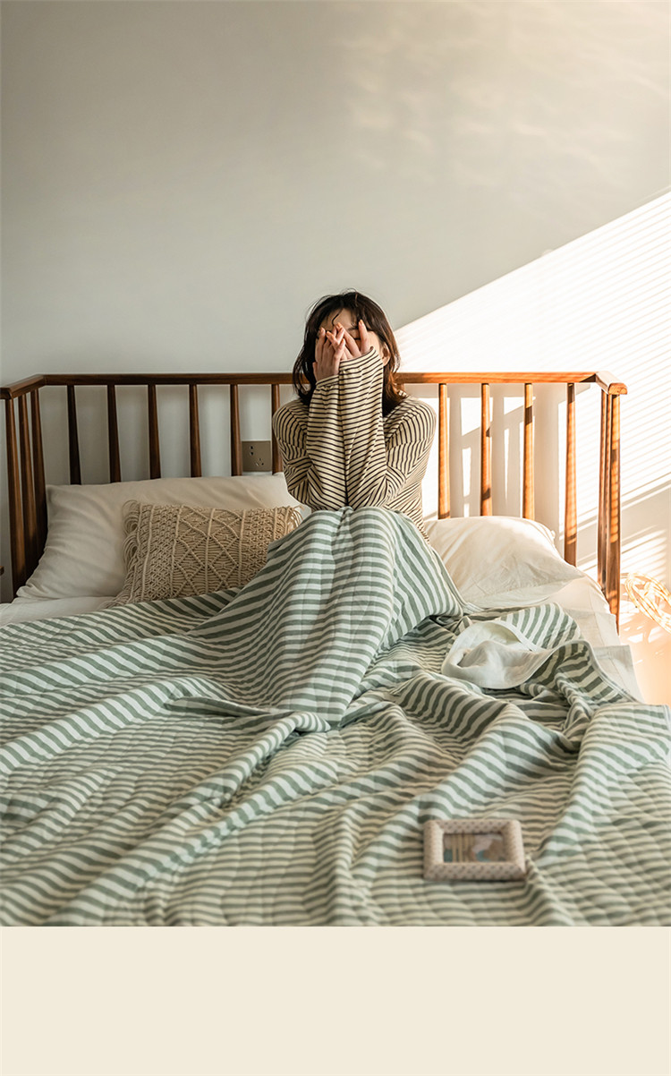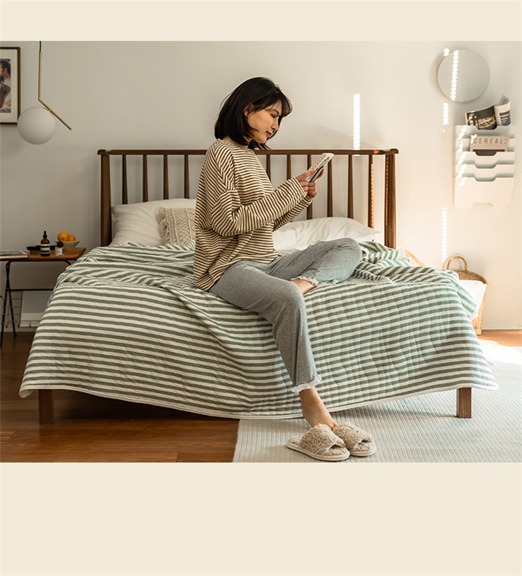 新款 全棉针织棉夏被 天竺棉夏凉被 墨绿条纹