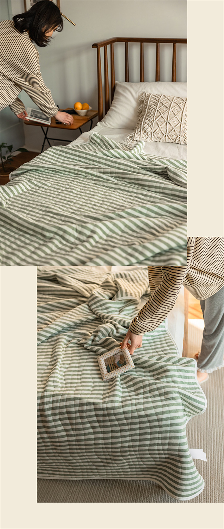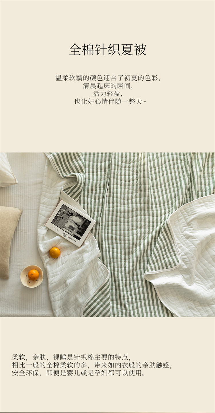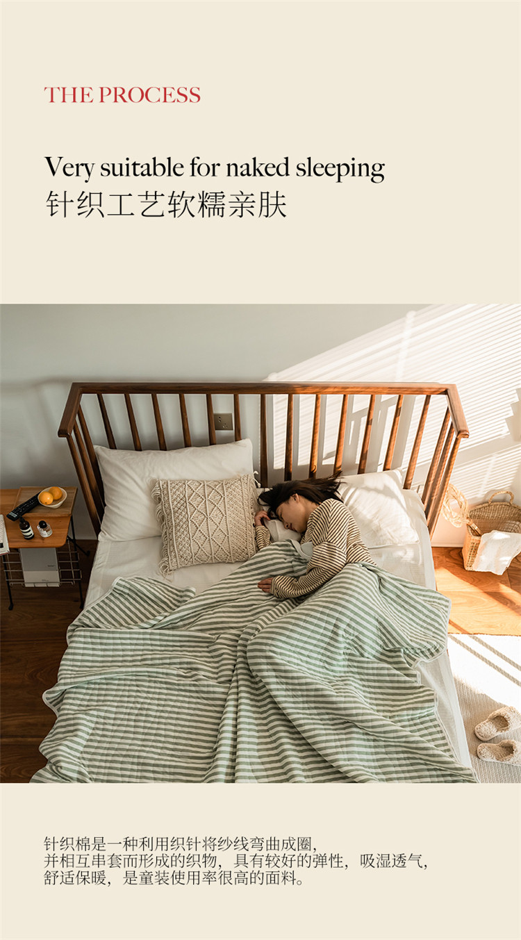 商品名称:新款 全棉针织棉夏被 天竺棉夏凉被 墨绿条纹