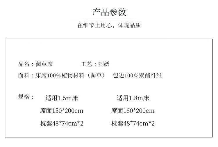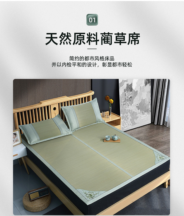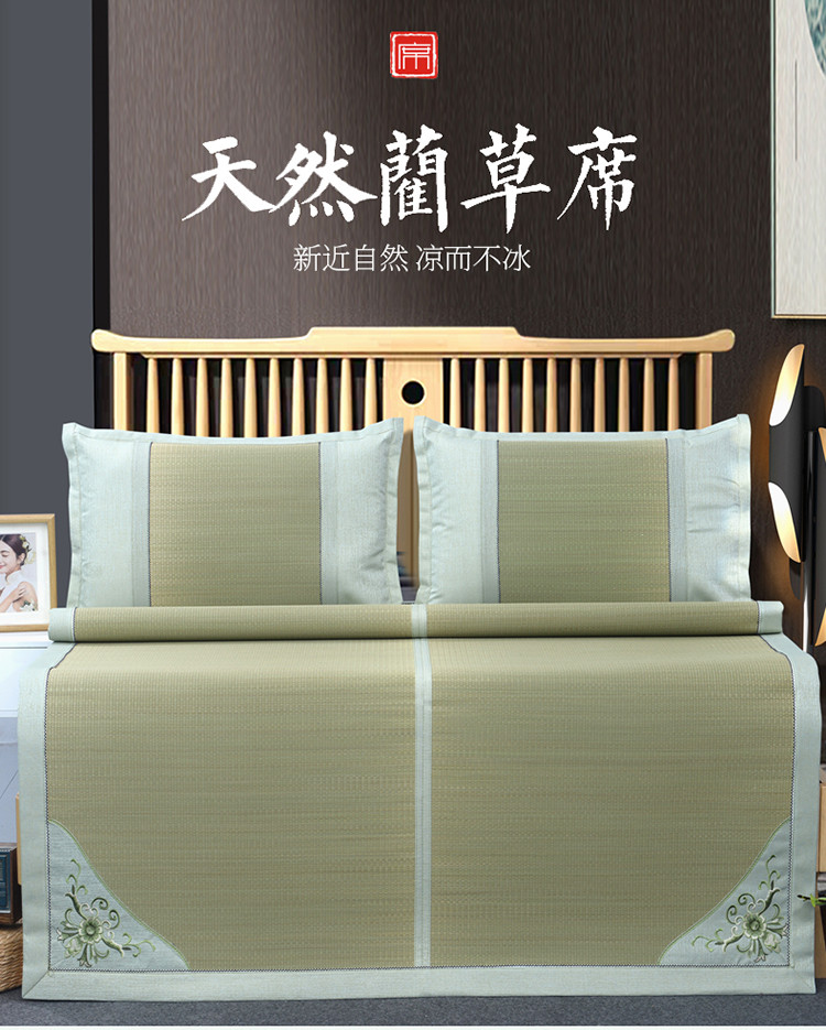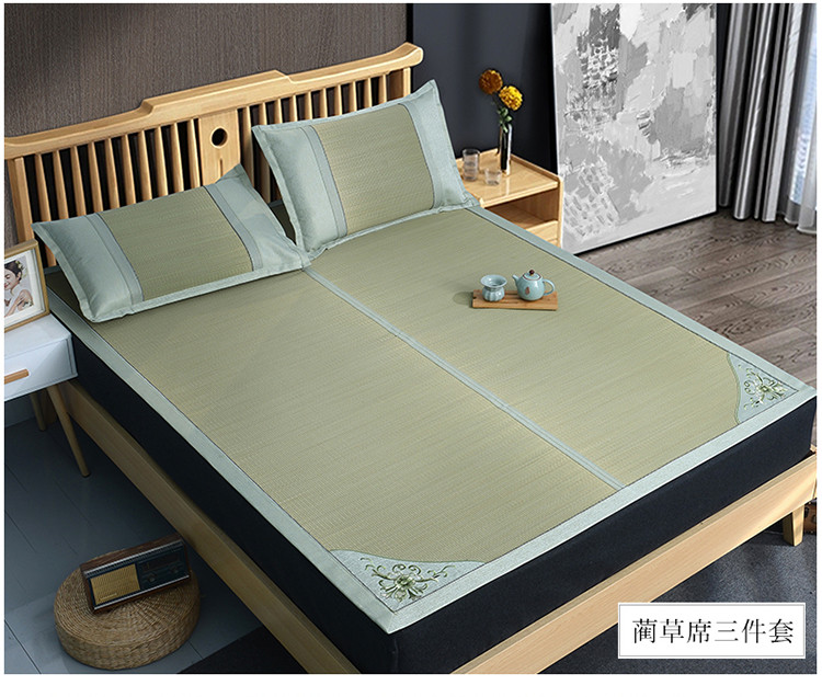 商品名称:【2025年新款】天然蔺草席三件套冰藤席凉席冰丝席竹席席兰草席