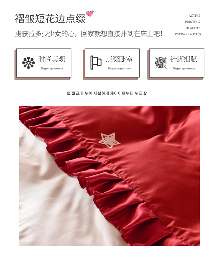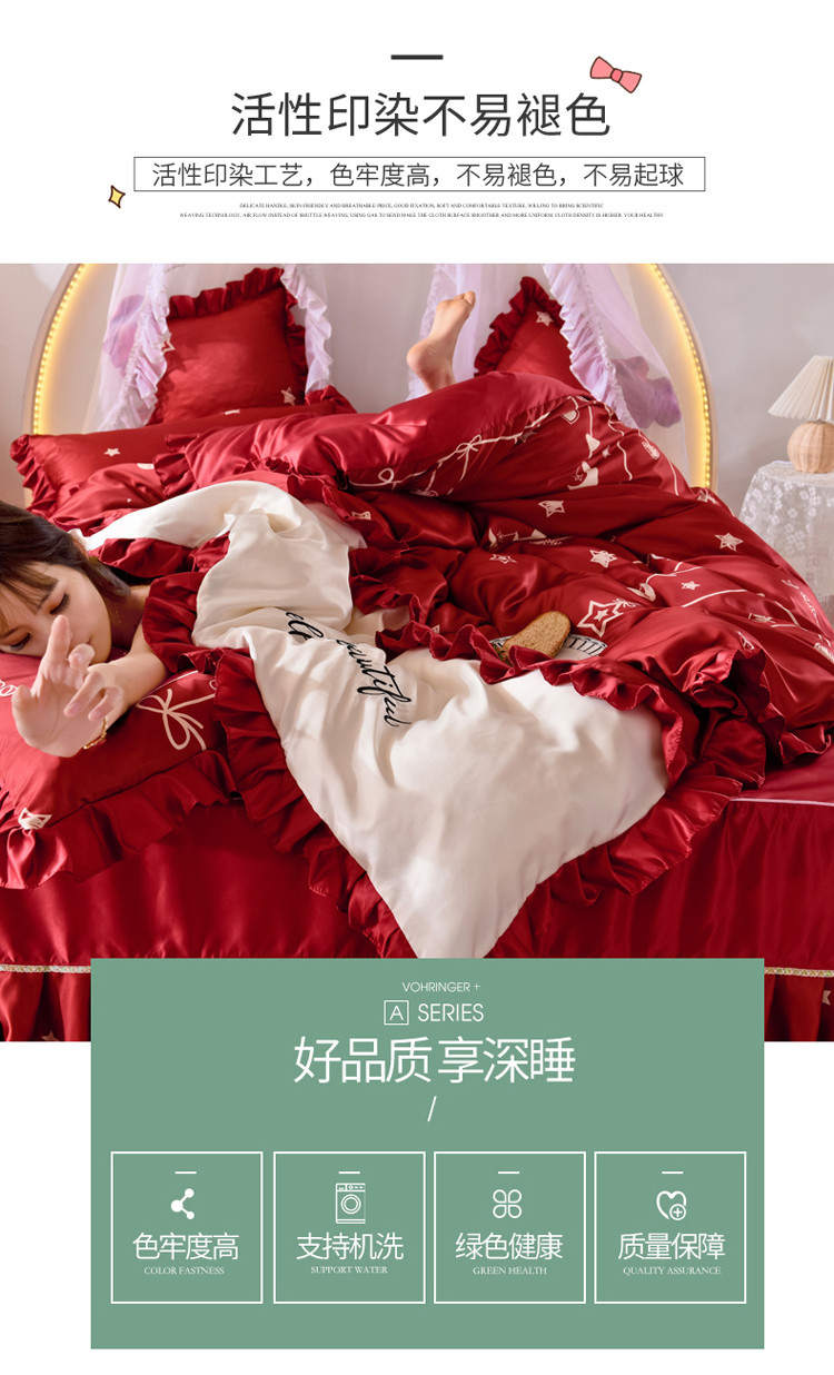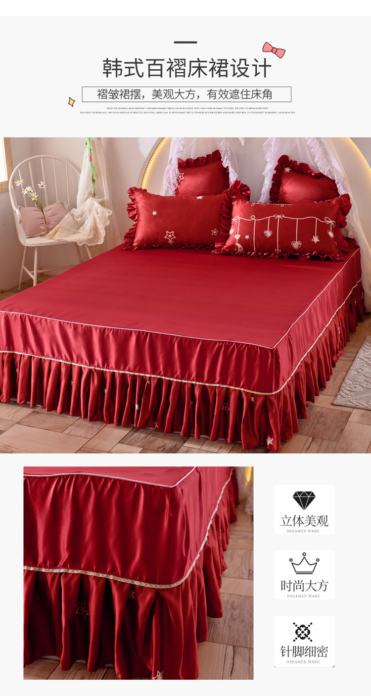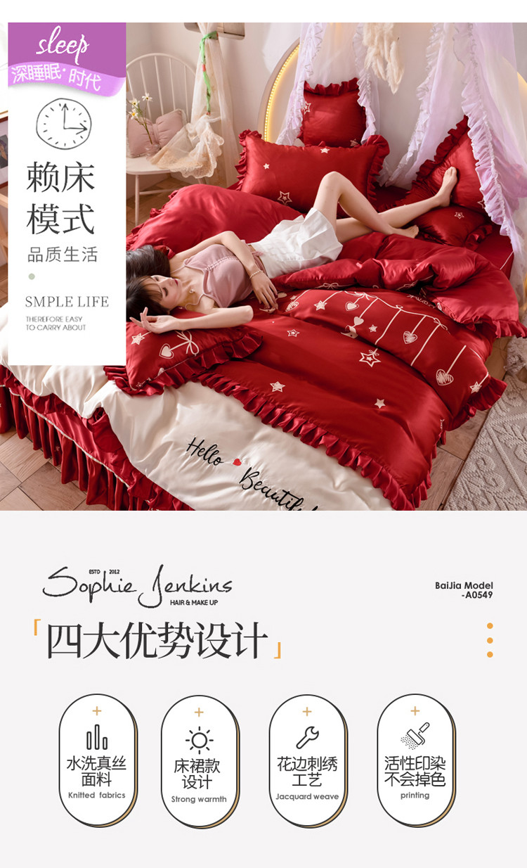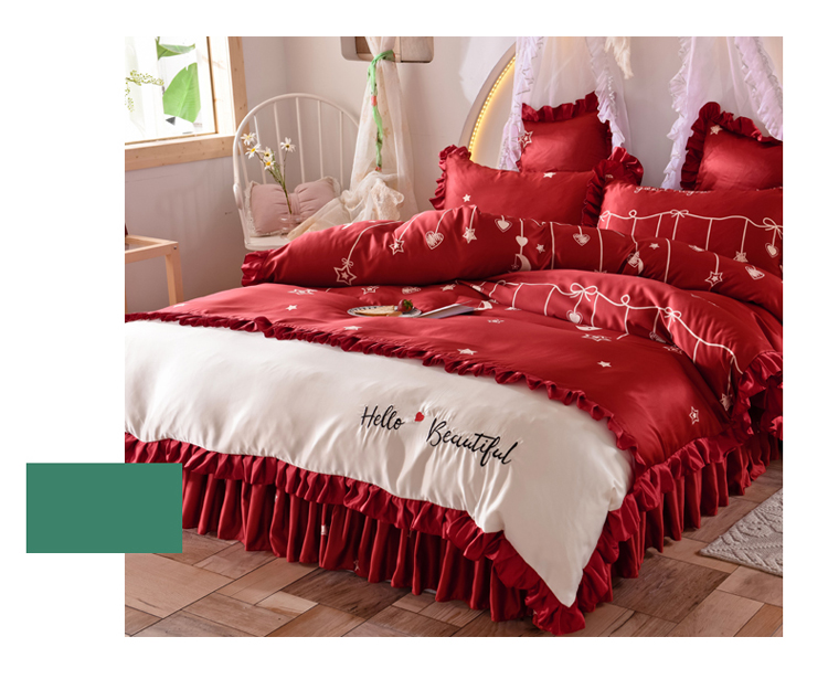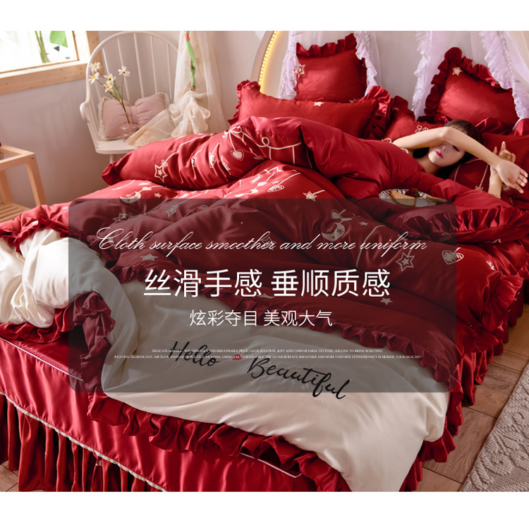 当前位置: 91家纺网 > 商品网购 > 床品套件 > 四件套 > 水洗棉四件套 > 欧冠 2020新款韩式床裙式水洗真丝绣花四件套 心动