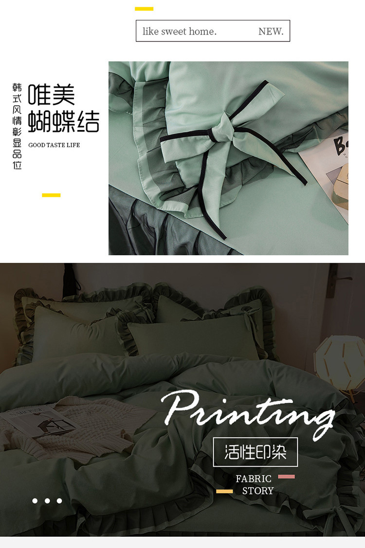 金米诺 新款韩版花边水洗棉泡泡纱四件套公主条四件套 褶皱-浅绿,褶皱-浅绿