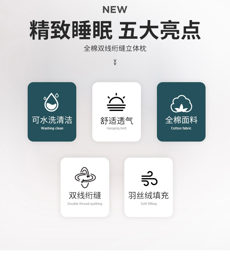 (总)天意美 2020新款全棉双线绗缝立体枕