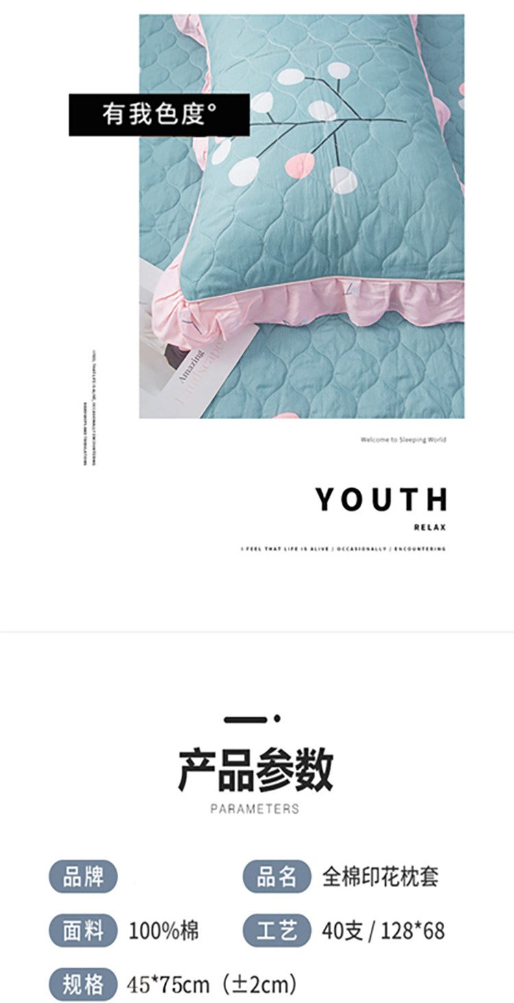 商品名称:爱妮玖玖 2025新款 夏风系列 全棉印花夹棉花边枕套
