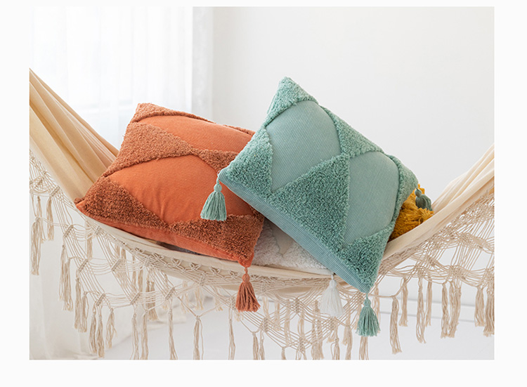 美茉家居 2020新款灯芯绒簇绒绣流苏抱枕 杏黄