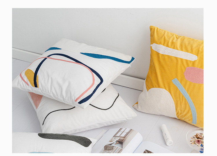 (总)美茉家居跨境电商爆款皮革帆布拼接抱枕黑白印花可拆洗靠垫,更甚,留白,有物,长物