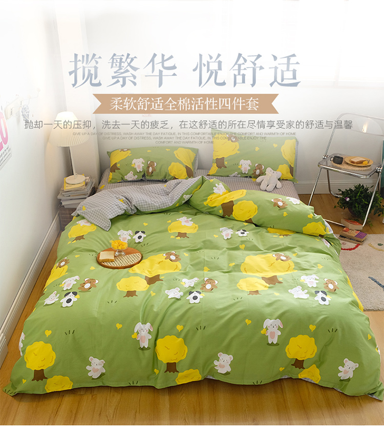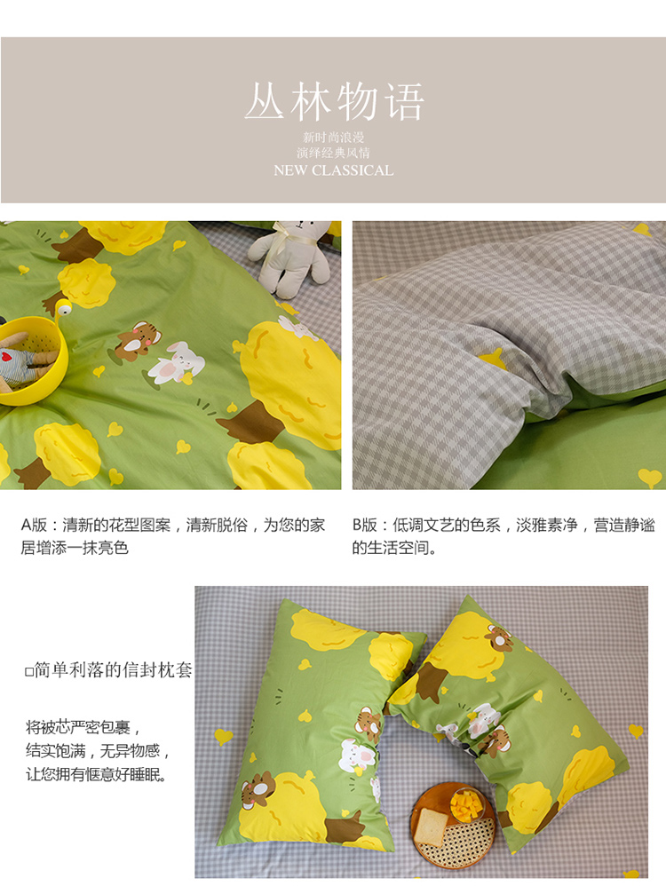 商品名称:窝米2020秋季13370全棉四件套萌宠风系列 丛林物语